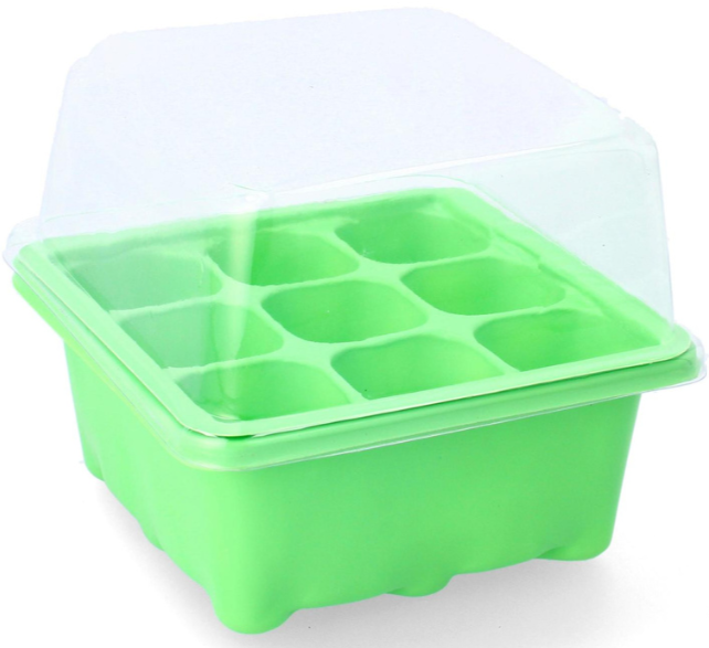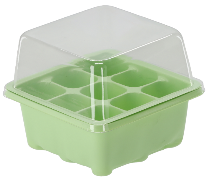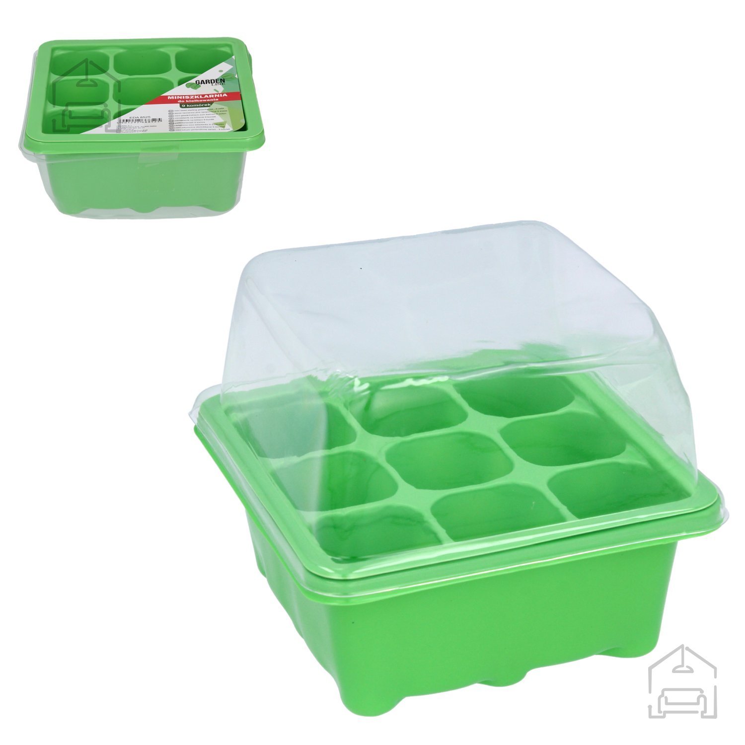 Osnova rastlinjaka meri 12 × 12 × 7 cm, kar ga uvršča med kompaktne modele, primerne za manjše prostore. Kljub svoji majhnosti ponuja dovolj prostora za vzgojo več sadik hkrati. V notranjosti je razdeljen na 9 posameznih celic, v katere lahko posadite različne vrste semen. Dimenzija vsakega lončka znaša 3,5 × 3,5 cm, kar omogoča enakomerno razporeditev substrata in optimalen pretok zraka med rastlinami. Takšna razporeditev preprečuje prekomerno vlago in gnitje korenin, hkrati pa olajša presajanje, saj lahko vsako rastlino posebej odstranite brez poškodb.
