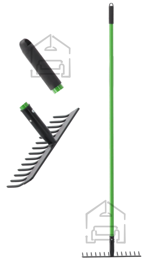 Glava grabljic je izdelana iz prašno barvanega jekla, kar zagotavlja izjemno trdnost in zaščito pred korozijo. Površina je odporna na vlago, umazanijo in mehanske poškodbe, zato orodje ohranja svojo funkcionalnost tudi po dolgotrajni uporabi na prostem. Jeklene zobe odlikuje natančna razporeditev, ki omogoča enakomerno prijemanje in premikanje zemlje, listja ali gradbenih materialov. Zaradi optimalne širine 35 cm grabljice omogočajo učinkovito delo tudi na večjih površinah, ne da bi pri tem izgubile natančnost pri manjših opravilih.