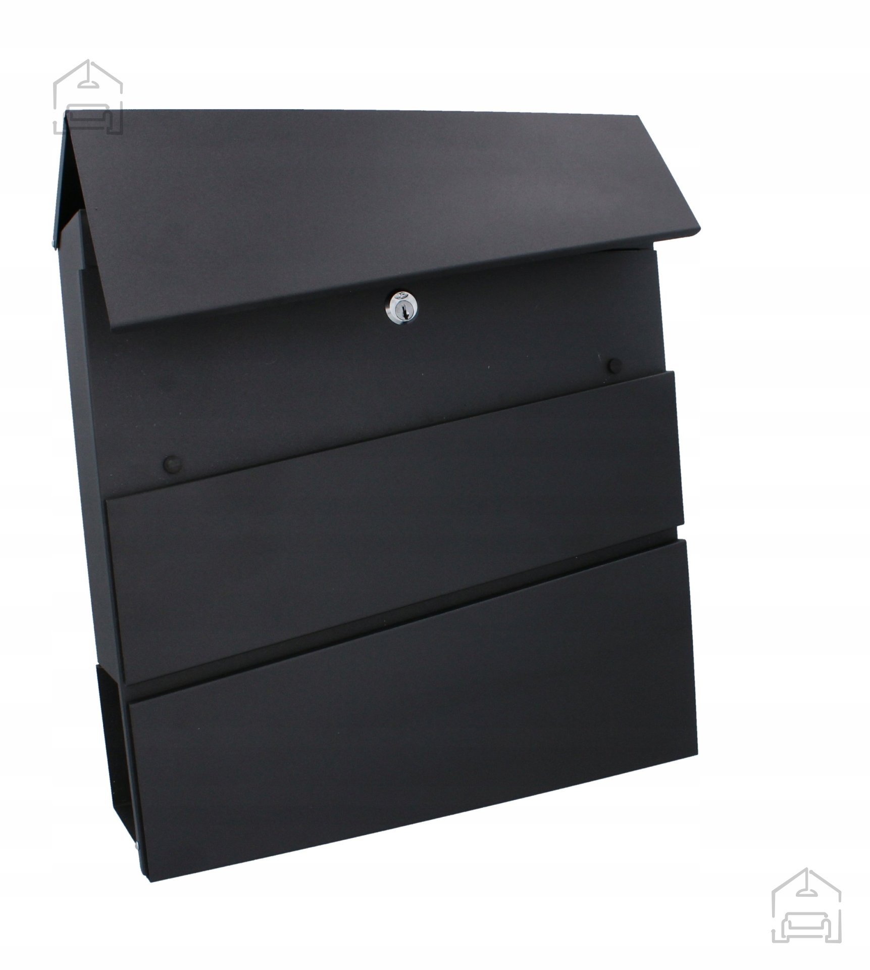 Osnova nabiralnika Parrot je robustno ohišje iz pocinkane pločevine, ki učinkovito preprečuje rjavenje. Prašno barvana površina ne le estetsko dopolnjuje videz, temveč tudi poveča odpornost proti praskam in UV-žarkom. Dimenzije 37 × 37 × 10,5 cm omogočajo dovolj prostoren predal za vsakodnevno pošto, kataloge in manjše pakete, hkrati pa ohranjajo kompaktno obliko, ki se lepo prilega različnim arhitekturnim slogom – od klasičnih do sodobnih fasad.