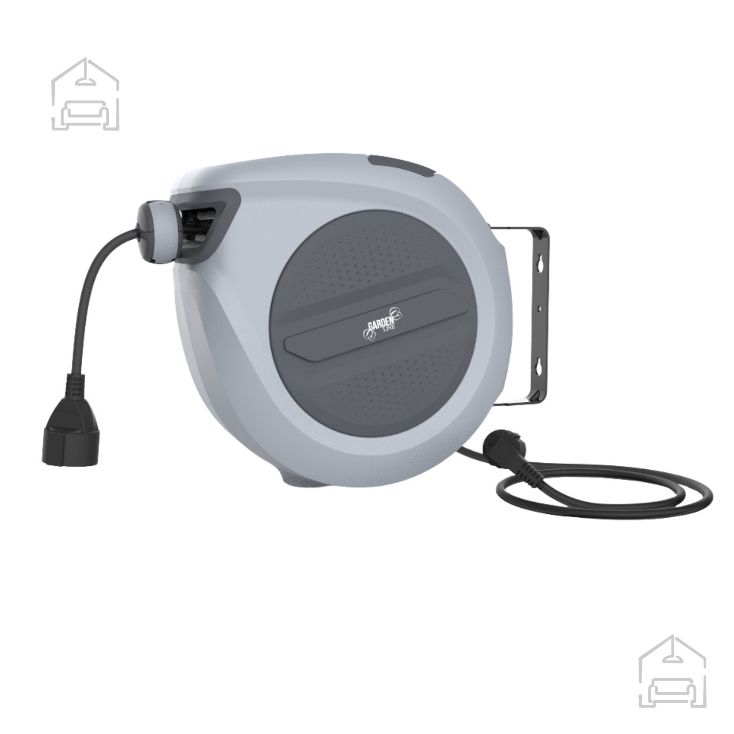 Ohišje bobna je izdelano iz visoko odporne plastike, ki kljub redni uporabi ohranja estetski videz in mehansko stabilnost. Nosilec iz jekla omogoča vrtljivo stensko montažo, kar pomeni, da lahko navijalec prilagodite smeri dela in dosegu brez nepotrebnega napora. S tem dosežete urejeno in varno delovno okolje, saj kabel ne leži več na tleh, kjer bi lahko povzročil spotike ali poškodbe. Stopnja zaščite IP20 zagotavlja primerno varnost pri uporabi v zaprtih prostorih, medtem ko vgrajena termična varovalka ščiti sistem pred pregrevanjem in preobremenitvami.