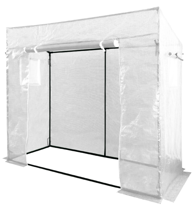 Praktična sprednja vrata z zadrgo omogočajo hitro odpiranje in zapiranje rastlinjaka, kar olajša oskrbo rastlin. Vrata se lahko po potrebi zvijejo navzgor in pritrdijo, s čimer se poveča dostop do notranjosti in omogoči boljše kroženje zraka. Dodatna okna z mrežami proti komarjem so strateško nameščena, da zagotavljajo stalno prezračevanje, obenem pa preprečujejo vdor žuželk. Tako rastline ves čas uživajo v svežem zraku, brez nevarnosti za okužbe in škodljivce. Ta kombinacija priročnih rešitev pomeni, da lahko znotraj rastlinjaka ustvarite popolnoma nadzorovano okolje, prilagojeno potrebam vašega pridelka.