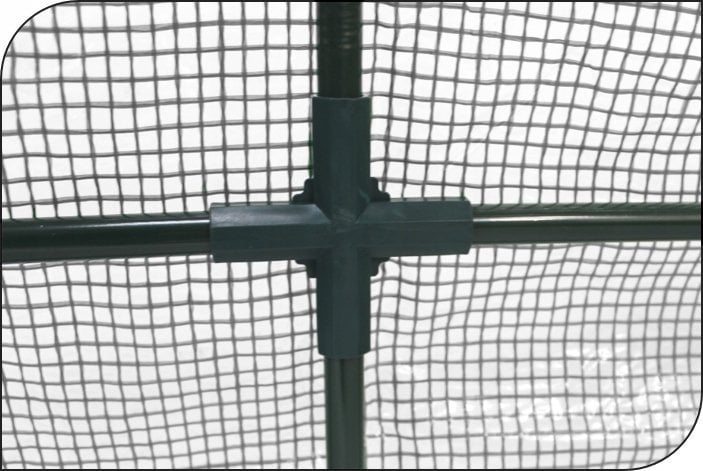 Okvir iz jeklenih cevi premera 16 mm, povezan s kakovostnimi PE priključki, zagotavlja dolgo življenjsko dobo in stabilnost tudi v vetrovnih razmerah. Konstrukcija je zasnovana tako, da jo lahko hitro sestavite brez posebnega orodja, hkrati pa omogoča enostavno razstavljanje in shranjevanje po koncu sezone. Spodnji ovratnik, ki ga lahko zasujete z zemljo, dodatno stabilizira strukturo in preprečuje vdor škodljivcev ter hladnega zraka v notranjost. Zaradi priloženih klinov za ojačitev je rastlinjak še bolj odporen na vremenske obremenitve, kar povečuje njegovo zanesljivost in varnost uporabe.