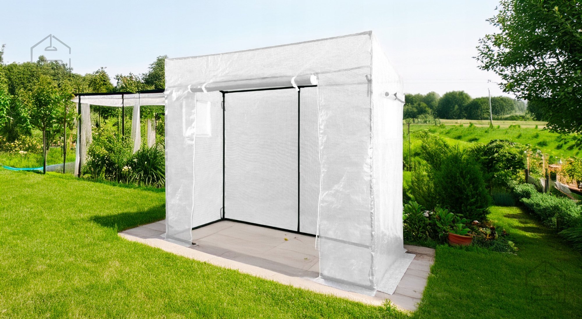 Stabilen okvir s PE priključki in dimenzije 200 × 77 × 168/146 cm: Rastlinjak za paradižnike bel *0766 – Chomik. Ta prostoren in izjemno funkcionalen rastlinjak je zasnovan posebej za ljubitelje vrtnarjenja, ki želijo svojim paradižnikom zagotoviti optimalne pogoje za rast, ne glede na vremenske razmere. Zahvaljujoč kakovostnim materialom, premišljeni konstrukciji in dodatnim ojačitvam, postane ta model zanesljiv partner vsake sezone – od prvih sadik do bogate letine.