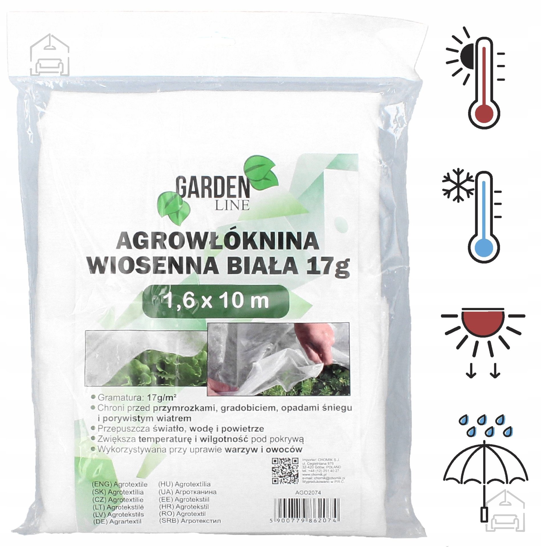 Agrofilc spomladanski z maso 17 g, v beli barvi, je idealen za zaščito rastlin pred pozebo, točo, snežnimi padavinami in sunkovitim vetrom. Povečuje temperaturo in vlažnost pod pokrovom ter zagotavlja optimalne pogoje za razvoj zelenjave in sadja. Odporen je na UV sevanje, hkrati pa prepušča svetlobo, vodo in zrak, kar ga naredi za odlično izbiro za zaščito rastlin spomladi.