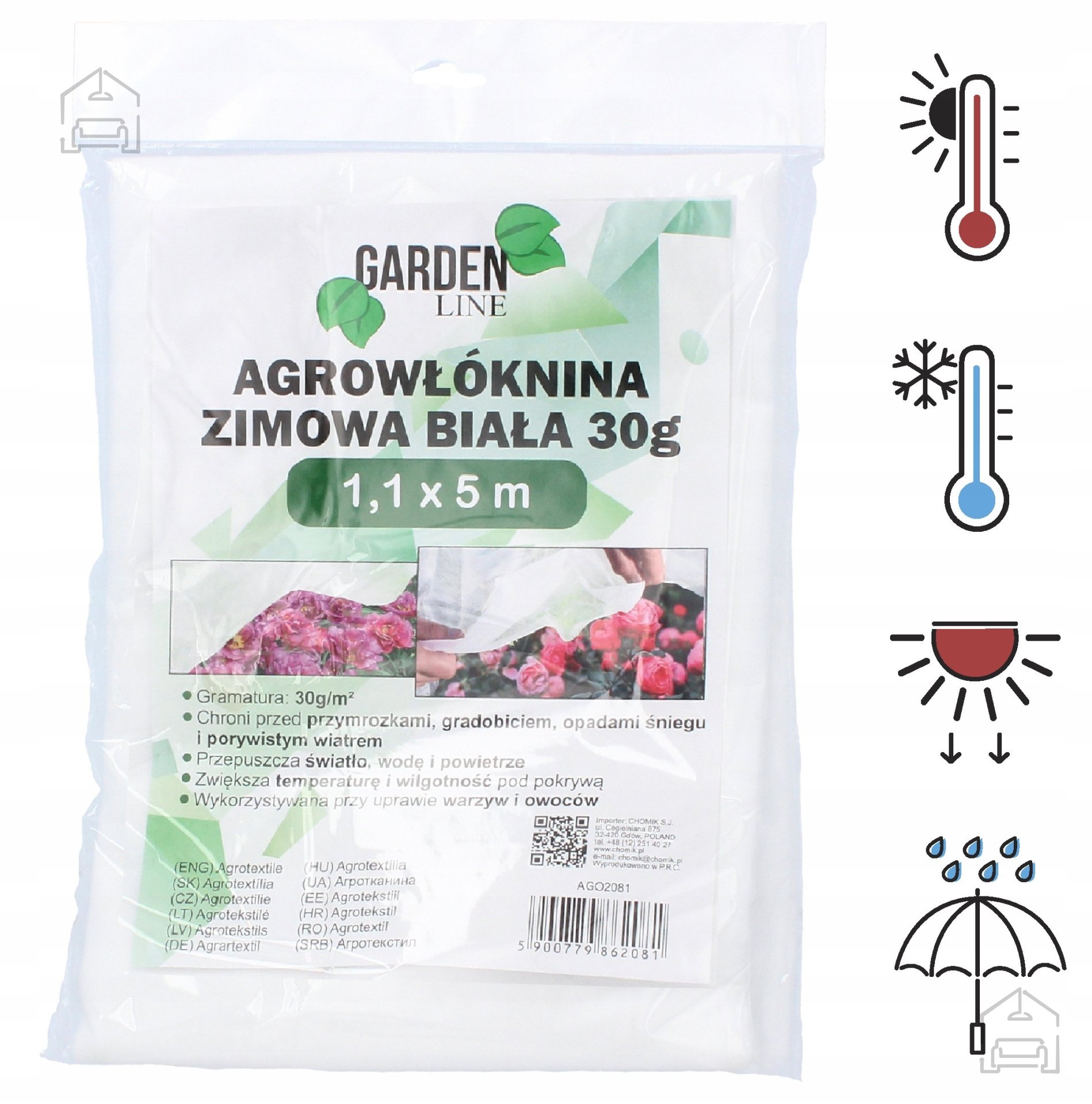 Agrovlaknina zimska z gramaturo 30 g odlično zaščiti grmičevje, drevesa ter druge rastline pred mrazom, točo, snežnimi padavinami in sunkovitim vetrom. Zahvaljujoč lastnostim zviševanja temperature in vlažnosti pod pokrovom zagotavlja optimalne pogoje za rast rastlin. Je odporna na UV-sevanje ter prepušča svetlobo, vodo in zrak, kar jo naredi za idealno rešitev za zaščito rastlin pozimi in zgodaj spomladi.