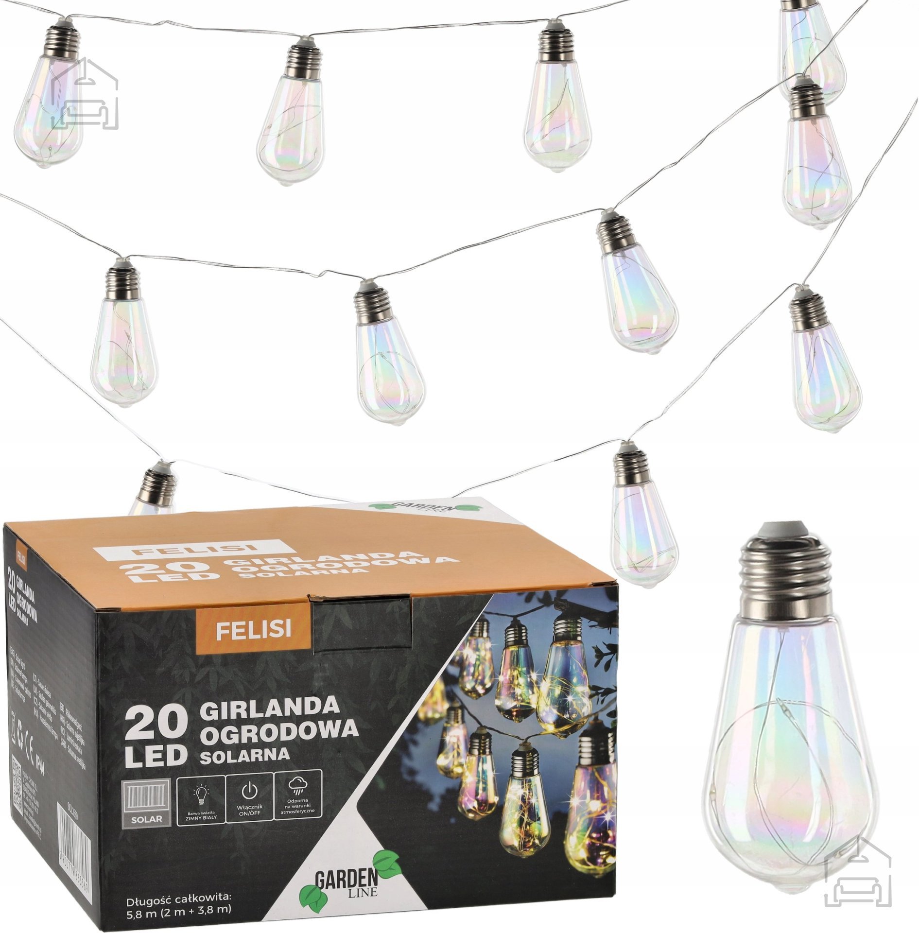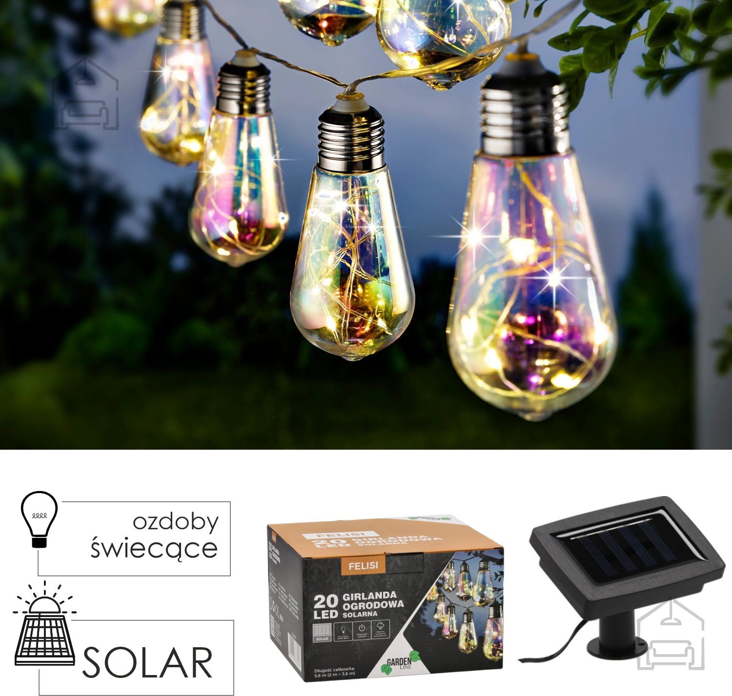 Dodaj čarobni sijaj svojemu balkonu, terasi ali vrtu zahvaljujoč solarni girlandi Felisi. Ta svetlobna girlanda je odličen način za zunanjo osvetlitev, ki ne le izgleda čudovito, temveč tudi pomaga prihraniti pri stroških elektrike zahvaljujoč napajanju s sončno energijo. Solarni venec Felisi ni le vir svetlobe, temveč tudi dekorativni element, ki bo vnesel poseben ambient v tvoj prostor. Hladna bela LED svetloba enakomerno osvetli okolico in ustvari prijetno ter romantično vzdušje med poletnimi večeri.