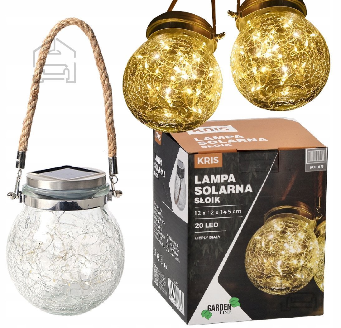 Izdelek meri 12 × 12 × 14,5 cm, kar omogoča enostavno postavitev ali obešanje na različne površine. Njegova oblika spominja na dekorativni kozarec z nežnimi razpokami, ki odbijajo svetlobo in ustvarjajo zanimiv vizualni učinek. Takšna zasnova daje vtis ročno izdelanega okrasnega elementa, primernega za rustikalne, sodobne ali boho zunanje ureditve. Zaradi trpežnih materialov je svetilka odporna na običajne vremenske razmere, kar povečuje njeno življenjsko dobo in zanesljivost pri uporabi na prostem.