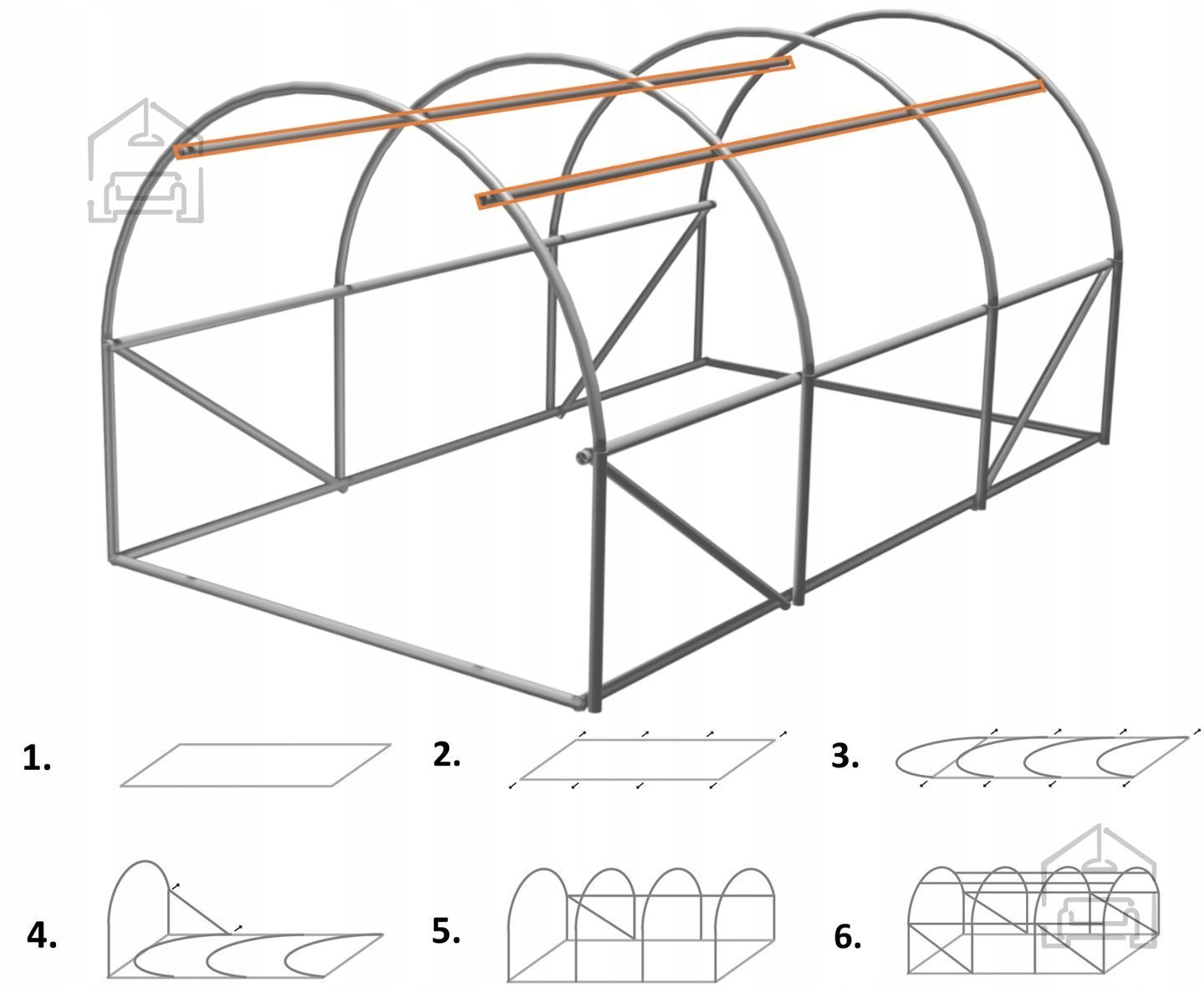Montaža tunela je preprosta in ne zahteva posebnega orodja. Posamezni segmenti se sestavijo s pomočjo spojnih elementov, folija pa se razpne čez ogrodje in pritrdi z vrvmi ali klinčki. Zaradi kompaktnih mer 3 × 2 × 2 m je tunel primeren tudi za manjše vrtove, dvorišča ali celo večje balkone, kjer želite ustvariti lastno mikroklimo za gojenje rastlin. Ko se sezona konča, ga lahko enostavno razstavite in shranite, saj materiali zloženi zavzamejo malo prostora. Pocinkano jeklo in kakovostna PE folija omogočata ponovno sestavljanje brez izgube stabilnosti ali elastičnosti folije.