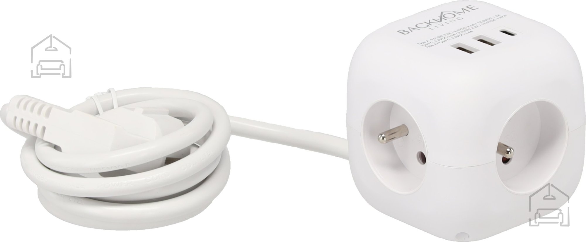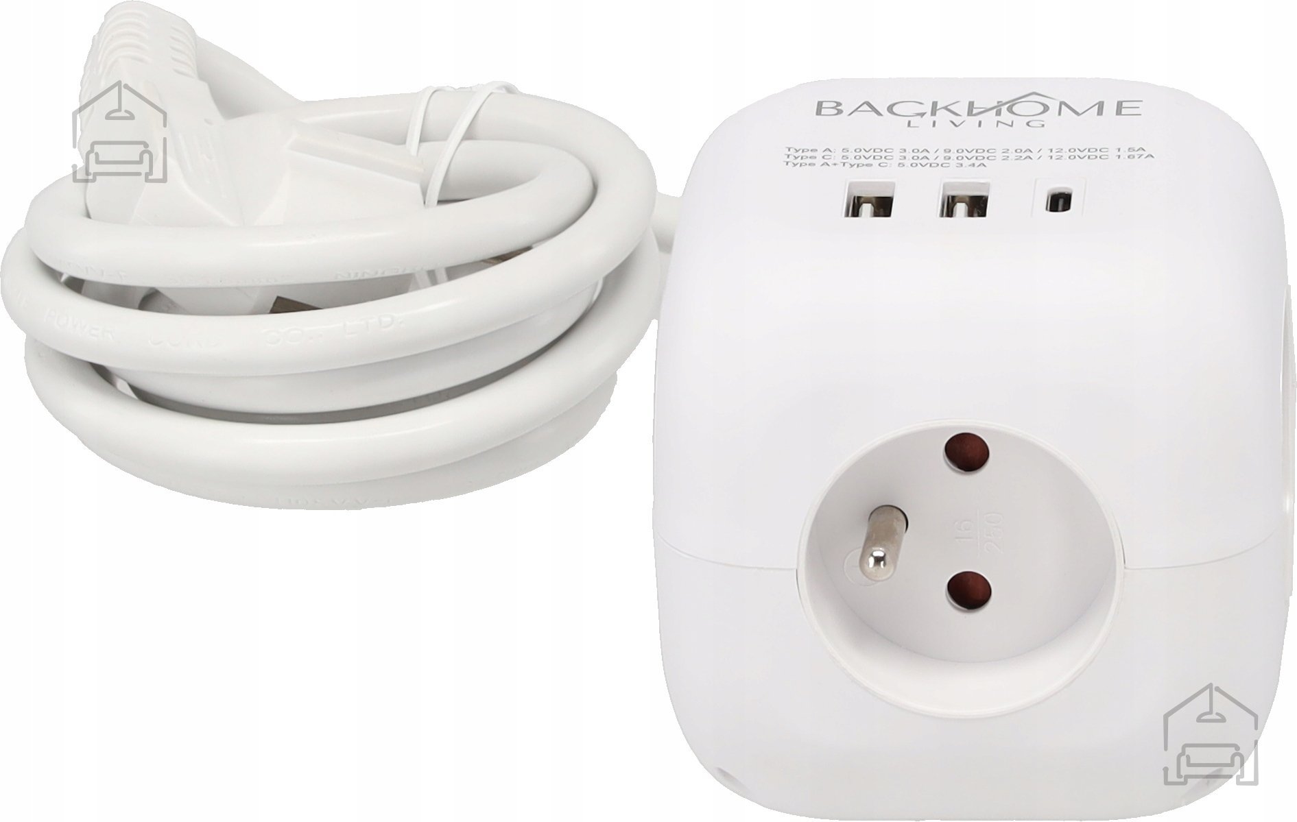 Bela napajalna kocka KAB2578 združuje praktičnost, varnost in sodoben dizajn v eni kompaktni rešitvi. S tremi električnimi vtičnicami (3 × 16 A 230 V) in tremi USB vhodi omogoča hkratno napajanje različnih naprav v gospodinjstvu, pisarni ali delavnici. Dolžina kabla 1,5 m zagotavlja dovolj svobode pri postavitvi, stikalo na ohišju pa omogoča popoln nadzor nad porabo energije. Priložen dvostranski lepilni trak omogoča stabilno pritrditev podaljška na mizo, steno ali drugo površino. Izdelek je izdelan v tovarni Chomik na Poljskem.