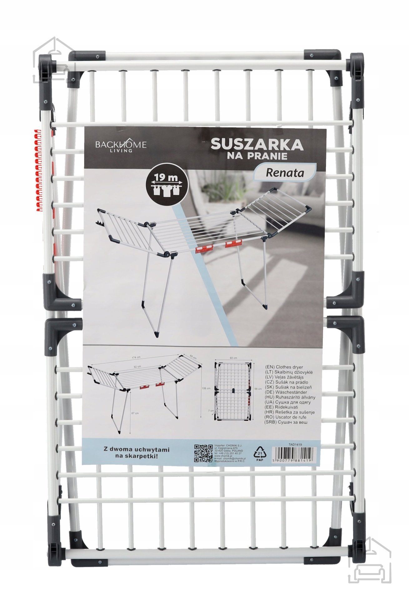 Chomikov sušilnik Renata je ustvarjen z mislijo na vsakodnevne potrebe sodobnega gospodinjstva. Dva dodatna držala omogočata ločeno sušenje manjših kosov, kar preprečuje, da bi se izgubili med večjimi oblačili. Glavni del sušilne površine je sestavljen iz več vzporednih žic, ki omogočajo dobro kroženje zraka med oblačili. To pospeši sušenje in zmanjšuje možnost neprijetnih vonjav. Sušilnik je primeren za vse vrste tkanin – od bombaža do občutljivih sintetičnih materialov. Zaradi stabilne konstrukcije se ne prevrne niti pri večjih obremenitvah, kar poveča varnost uporabe tudi v prisotnosti otrok ali hišnih ljubljenčkov.