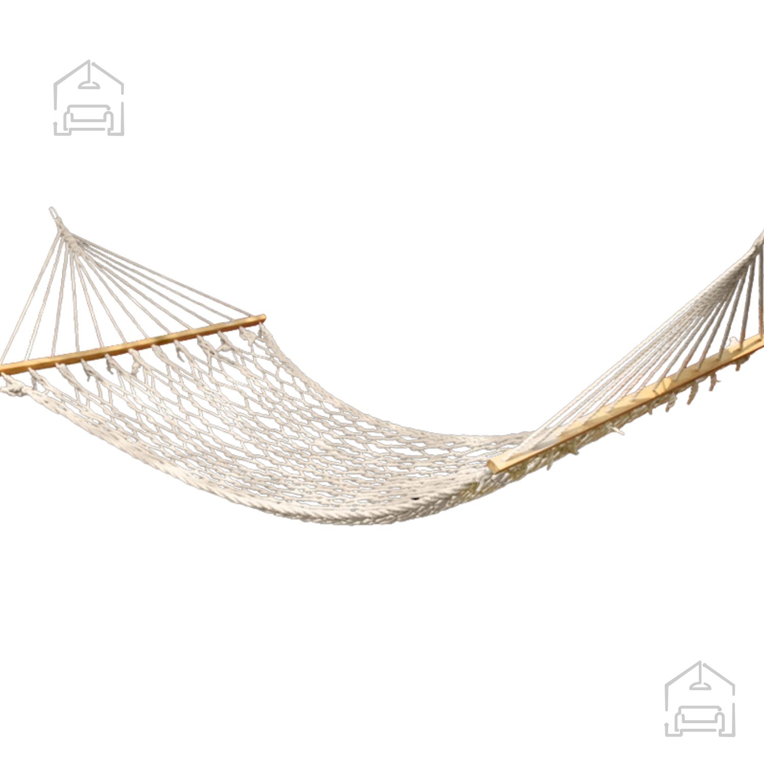 Bež barva mreže se zlahka ujema z različnimi stili zunanje opreme – od rustikalnega do modernega minimalističnega ambienta. Naravni ton ustvarja občutek topline in miru, kar prispeva k harmoničnemu vzdušju na vašem vrtu ali terasi. Material mreže je iz trpežne prepletene vrvi, ki se prilagodi obliki telesa, kar pomeni, da boste v njej vedno našli udoben položaj. Vrvna struktura omogoča zračno kroženje in preprečuje pregrevanje kože v toplih poletnih dneh, zato je uporaba prijetna tudi v vročem podnebju.