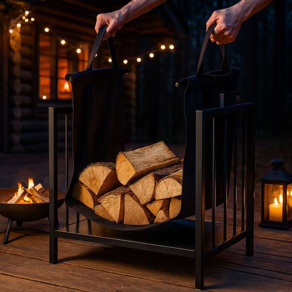 Poseben poudarek pri tem izdelku je prenosna torba, ki omogoča, da drva enostavno prinesete iz zunanjega prostora do kamina, ne da bi pri tem puščali sledi ali raztresali lubje. Torba z dolžino 124 cm in širino 38 cm je dovolj prostorna za večje kose drv, hkrati pa dovolj kompaktna, da jo lahko enostavno zložite, ko je ne potrebujete. Izdelana je iz trpežnega materiala, odpornega na obrabo, kar zagotavlja dolgo življenjsko dobo tudi pri pogosti uporabi. Kovinski ročaji stojala in priročni ročaji torbe omogočajo varno upravljanje brez zdrsa ali nevarnosti poškodb.