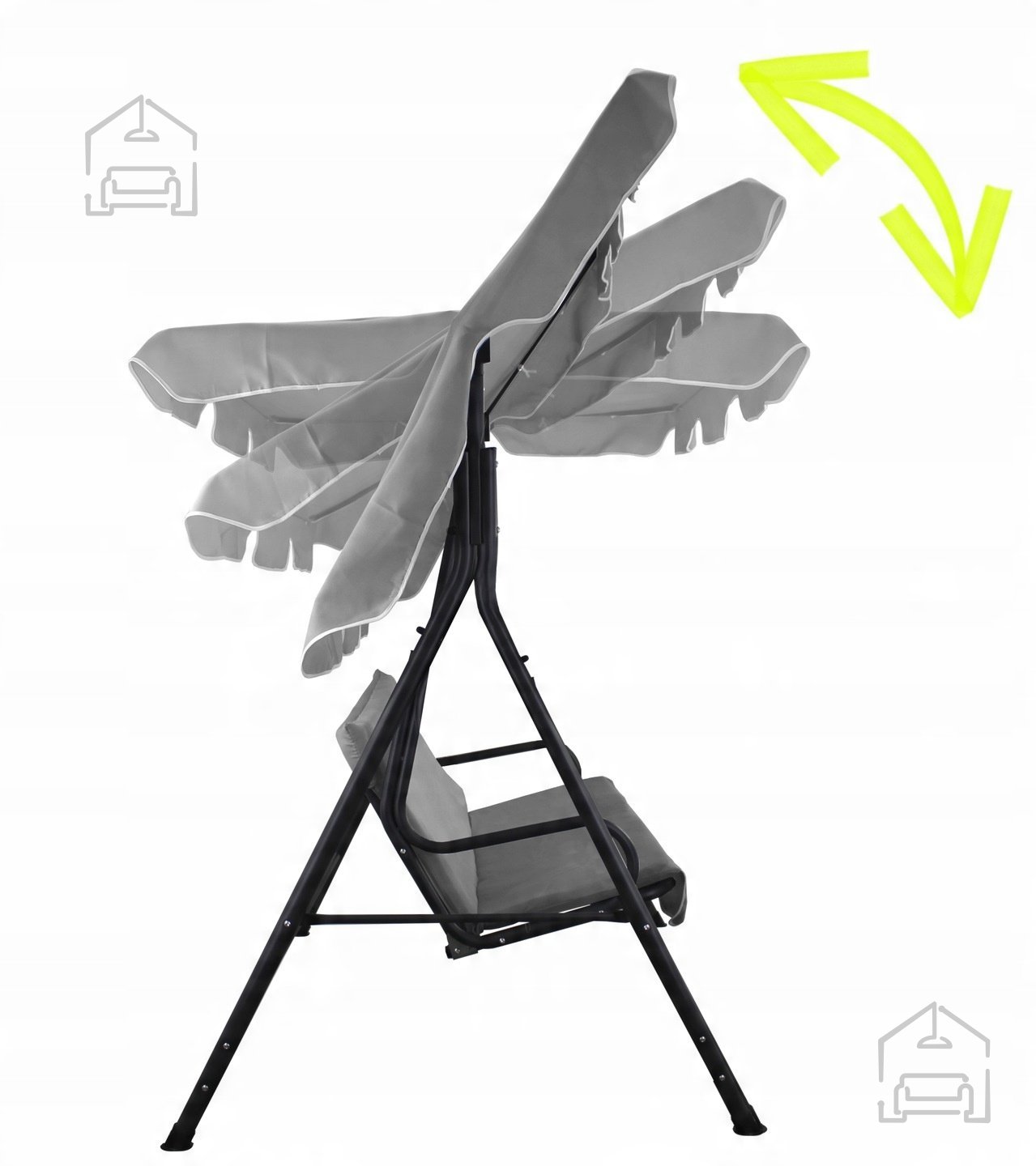 Vrtna gugalnica KRE7626 je opremljena z nastavljivo strešico, ki jo lahko nagnete za več kot 45° in tako preprosto prilagodite glede na smer sončnih žarkov. Streha nudi prijetno senco in zaščito pred UV-sevanjem, zato boste lahko uživali na prostem tudi v najbolj vročih poletnih dneh. Če si zaželite več sonca, strešico preprosto nastavite v bolj odprt položaj.