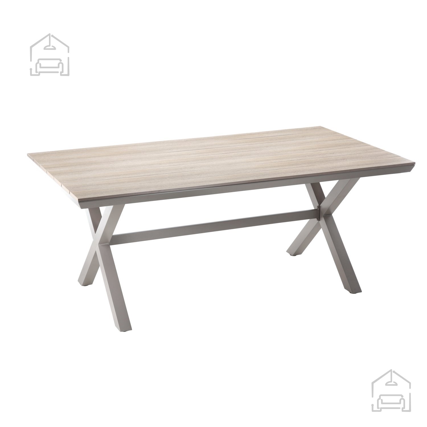 Njena pravokotna oblika omogoča optimalno izrabo prostora in enostavno kombiniranje s stoli različnih stilov – od klasičnih lesenih do minimalističnih kovinskih ali tekstilnih. Zaradi nevtralnega bež odtenka se miza enostavno vključi v obstoječo barvno paleto vašega zunanjega prostora, hkrati pa ji daje pridih naravne topline.
