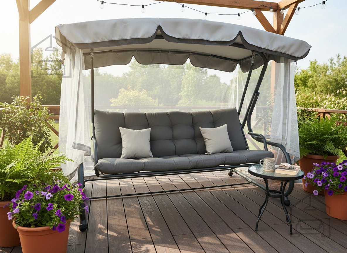 Ta elegantna in trpežna vrtna gugalnica je popolna izbira za sprostitev na prostem, namenjena pa je do trem osebam. Model KRE0954 združuje stabilnost, udobje in zaščito pred insekti. Zasnovana je s poudarkom na kakovosti in funkcionalnosti – od močnega jeklenega okvirja do udobnih, debelih blazin in praktične strehe, ki se prilagodi vremenskim pogojem. Izdelek prihaja iz tovarne Chomik na Poljskem, kjer združujejo sodobno oblikovanje s preverjeno vzdržljivostjo materialov.