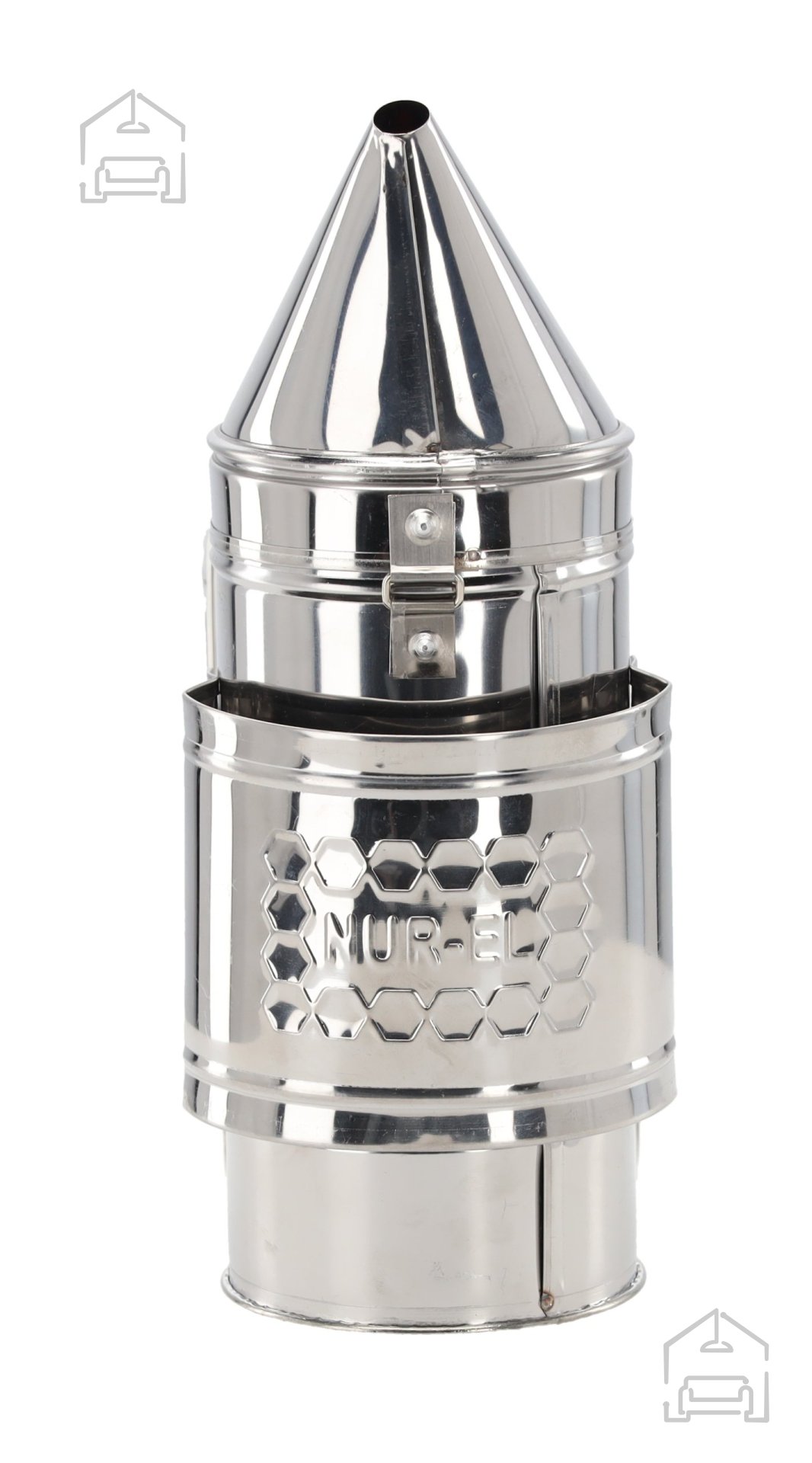 Pri delu v čebelnjaku je stabilnost orodja ključnega pomena. Dimnik ima široko osnovo, ki preprečuje prevračanje in s tem povečuje varnost pri uporabi. Ta zasnova omogoča, da dimnik trdno stoji tudi na neravnih površinah, kar je še posebej uporabno, če delate na prostem ali na terenu. Ročaj je ergonomsko oblikovan, kar omogoča udoben oprijem in zmanjšuje možnost zdrsa med rokovanjem. S tem je uporaba dimnika varna, natančna in učinkovita – lastnost, ki jo bodo cenili tako začetniki kot izkušeni čebelarji.