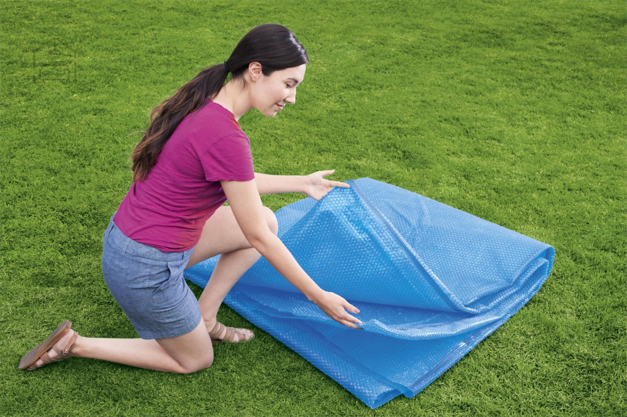 Pokrivalo ne izboljša le toplotne učinkovitosti, temveč tudi bistveno zmanjšuje količino nečistoč, ki bi sicer končale v vodi. Listje, prah, cvetni prah ali žuželke – vse to ostane na površini pokrivala in ne v vodi, kar pomeni manj čiščenja in manjšo porabo kemikalij za vzdrževanje bazenske vode. Mehurčkasta struktura folije zagotavlja dobro plovnost, zato se pokrivalo enakomerno razporedi po celotni površini bazena in ga lahko brez težav namesti ena oseba. Zaradi svoje lahkotnosti in prilagodljivosti ga preprosto razgrnete ali odstranite, ko želite zaplavati.
