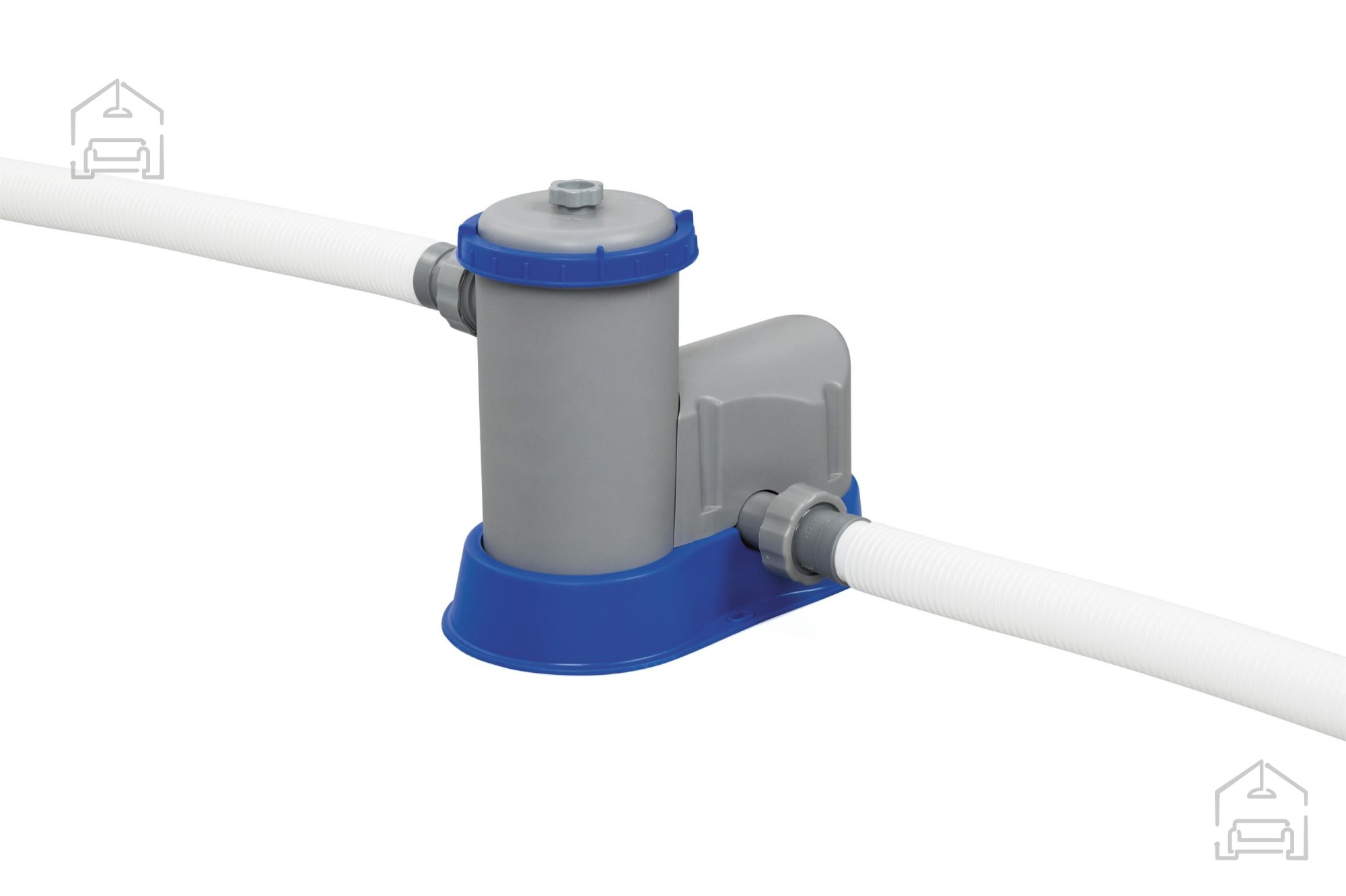 V kompletu je priložena filtrirna črpalka z zmogljivostjo 5 678 l/h, ki učinkovito kroži in čisti vodo. Napajanje črpalke (220–240 V) omogoča enostavno priključitev na običajno gospodinjsko električno omrežje. Sistem filtriranja pomaga zmanjševati usedline in ohranja vodo kristalno čisto skozi celotno kopalno sezono. V kompletu je vključen tudi filter tipa III, ki ga lahko enostavno zamenjate po potrebi, s čimer se zagotovi dolgoročna učinkovitost čiščenja.