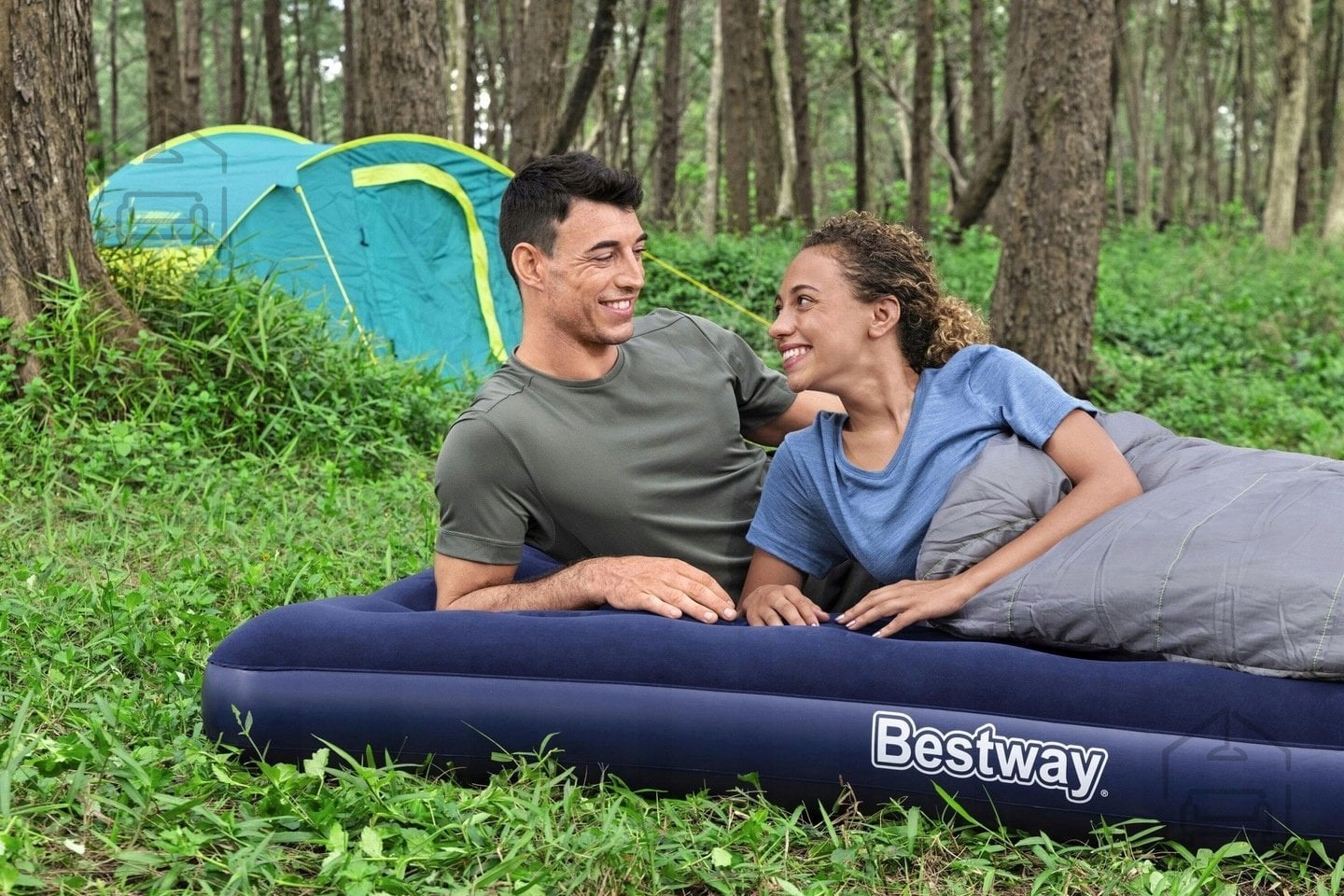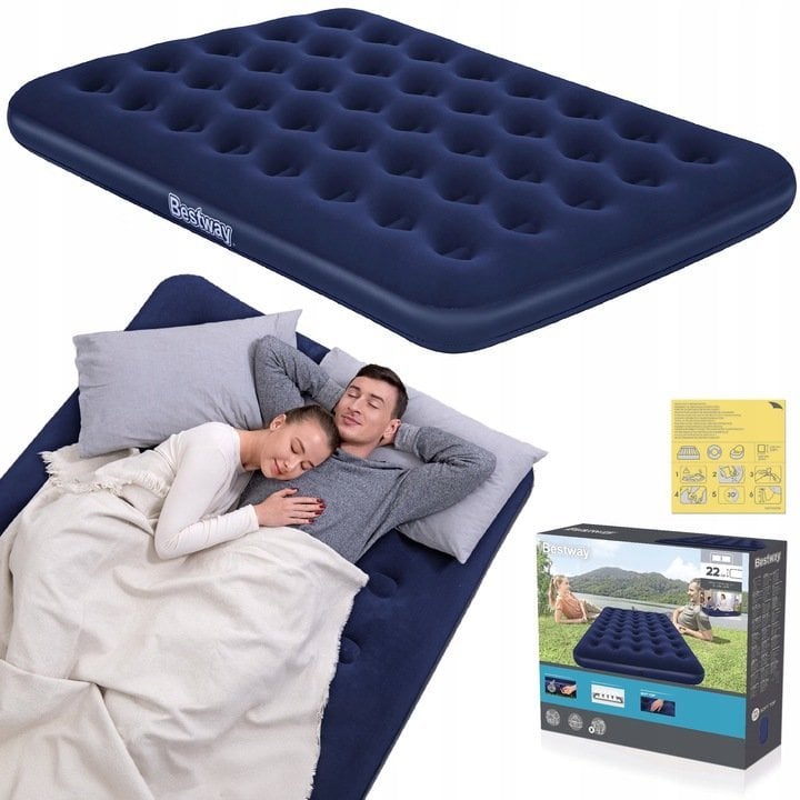 Napihljiva vzmetnica za dve osebi Bestway je zasnovana za tiste, ki želijo združiti udobje, praktičnost in enostavno uporabo. Z zgornjo površino iz mehkega velurja nudi prijeten občutek na koži, hkrati pa omogoča stabilno ležišče, ki se ne premika ali zvija med spanjem. Idealna je za uporabo doma kot dodatno ležišče za goste, za kampiranje ali sproščanje na vodi med poletnimi dnevi. Zahvaljujoč dimenzijam 191×137×22 cm omogoča udoben in prostoren počitek za dve osebi, ne glede na to, kje se nahajate.