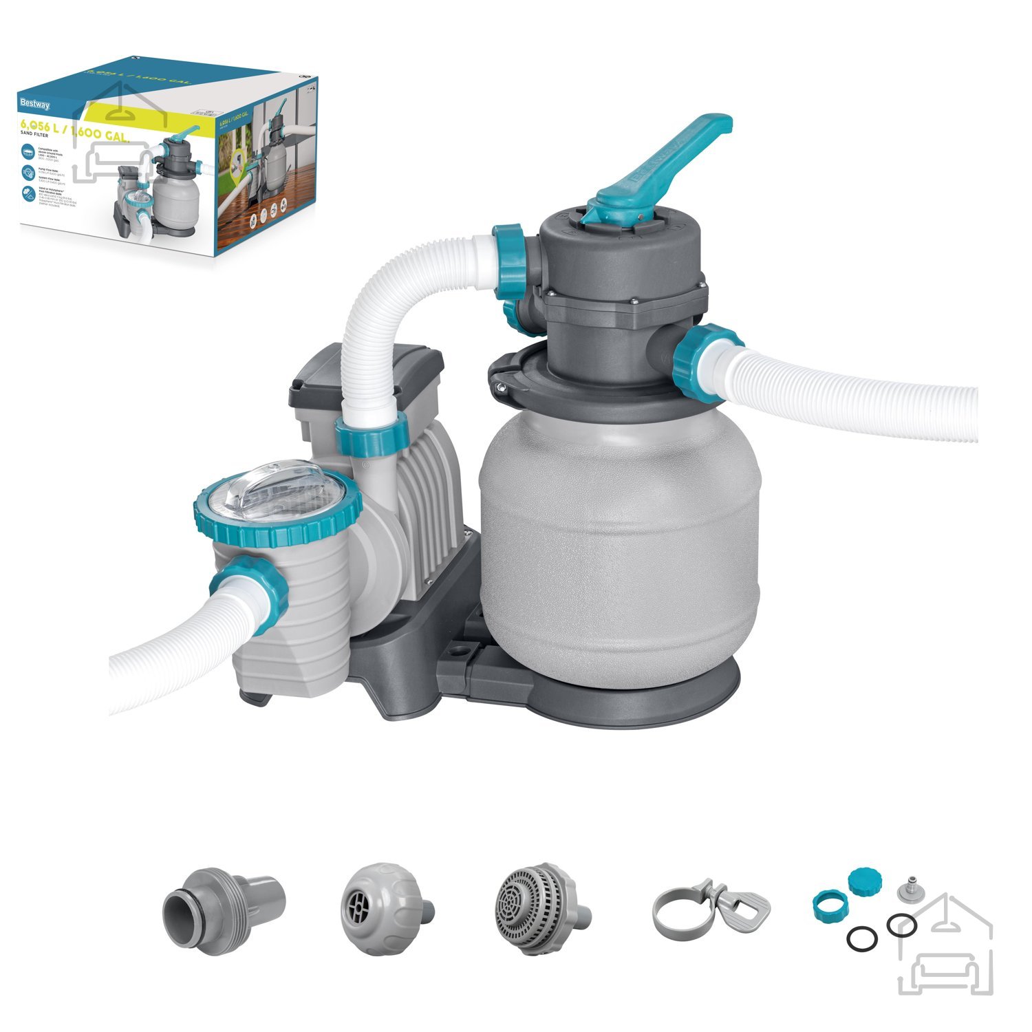 Filter Chomik 1320 uporablja naravni pesek kot filtrirni medij, kar omogoča izjemno učinkovito odstranjevanje drobnih delcev, umazanije, listov in drugih nečistoč iz vode. V primerjavi s kartušnimi filtri je peskasti sistem sposobnejši zadržati večjo količino delcev, ne da bi se pri tem hitreje zamašil. Zmogljivost 5678 l/h pomeni, da lahko filter v eni uri prečisti vodo v bazenu s prostornino do približno 20–25 m³, kar ga uvršča med najprimernejše izbire za družinske vrtne bazene srednje velikosti. Uporaba peska kot filtrirnega medija ne zahteva pogoste menjave – običajno zadostuje menjava vsaki dve do tri sezone, odvisno od intenzivnosti uporabe bazena.