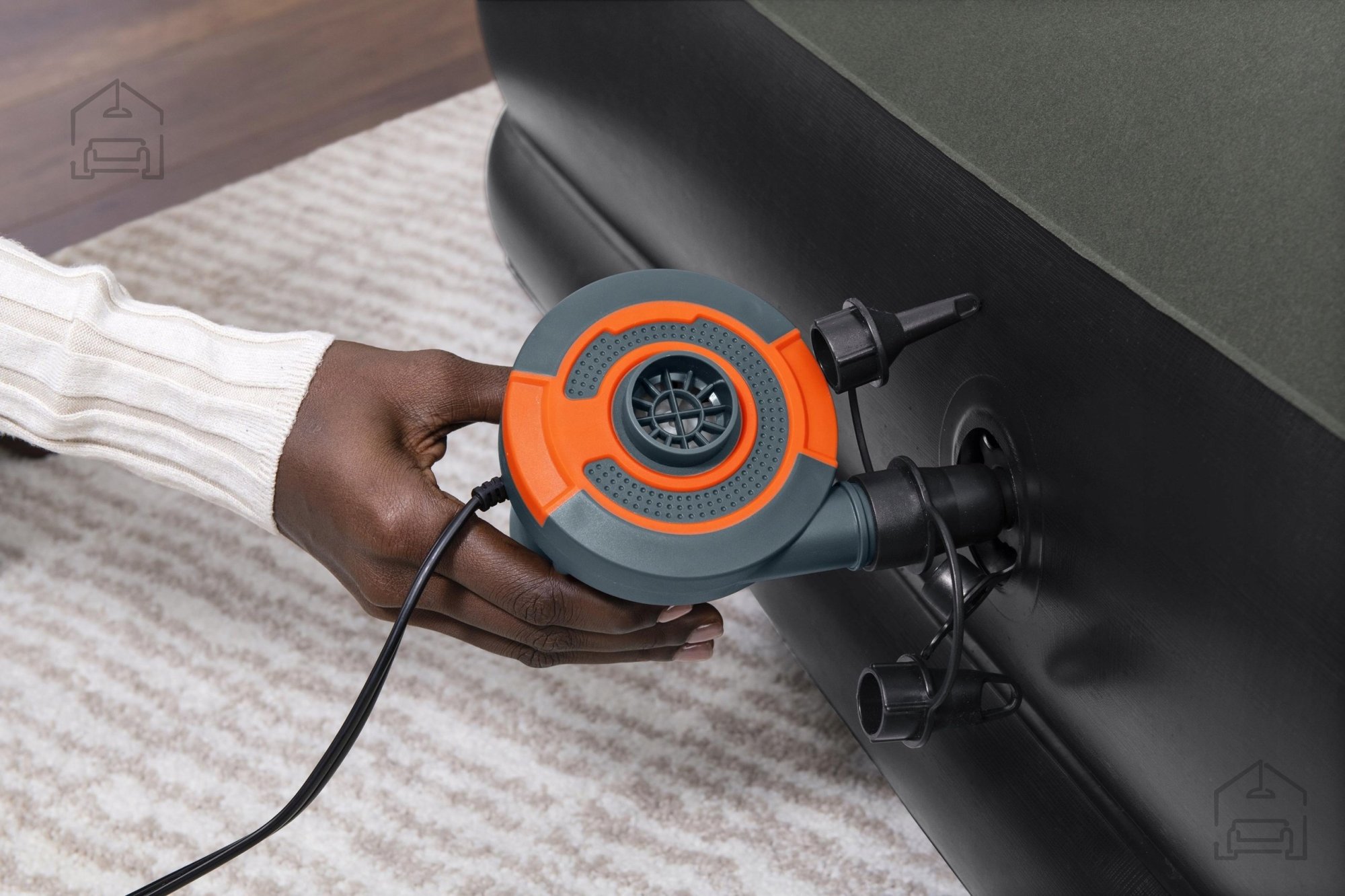 Ena izmed največjih prednosti te napihljive blazine je vgrajena električna črpalka, ki deluje na standardno napetost 220–240 V. V nekaj minutah lahko vzmetnico popolnoma napihnete ali izpraznite, kar prihrani dragocen čas in energijo. Ni potrebe po ročnem napihovanju ali dodatnih pripomočkih – vse, kar potrebujete, je dostop do električne vtičnice. Ko blazino izpraznite, se hitro zloži v kompaktno obliko, ki jo je enostavno shraniti ali prenesti v priloženi torbi.