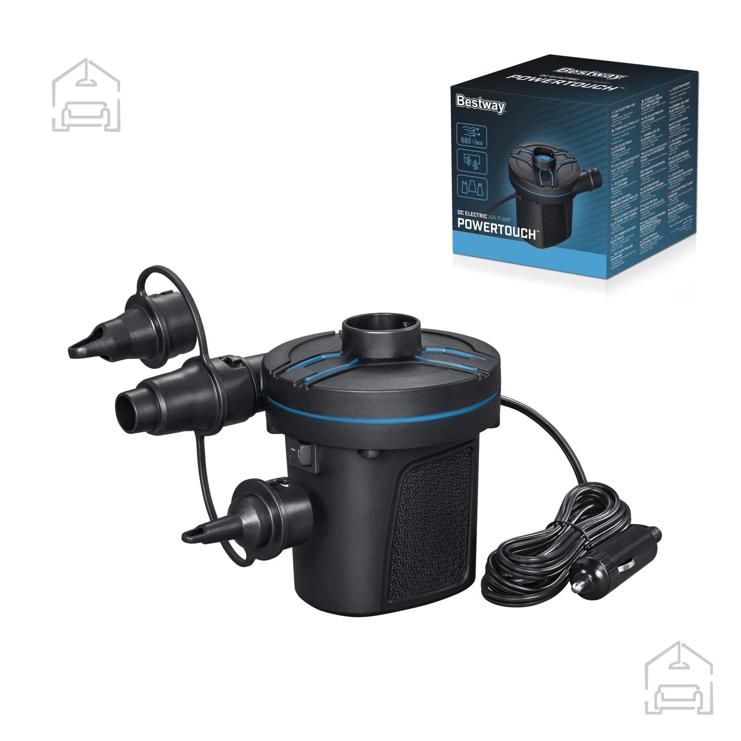 Ne glede na to, ali jo uporabljate doma, na vrtu ali na dopustu, tlačilka Power Touch ponuja vsestranskost, ki jo potrebujete. V domačem okolju pride prav pri napihovanju zračnih blazin za goste, otroških igrač ali sezonskih dekoracij. Na prostem pa je nepogrešljiva pri pripravi bazena, čolna ali druge športne opreme. Zaradi električnega napajanja deluje hitro in tiho, zato se izognete dolgotrajnemu ročnemu delu in hrupu, ki pogosto spremlja mehanske naprave.