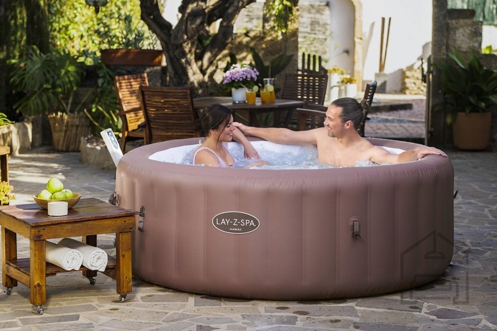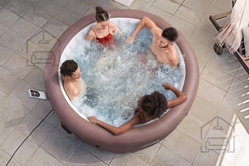 Lay‑Z‑Spa Hawaii AirJet se zaradi svoje velikosti in oblike odlično prilega tako na teraso kot v zimski vrt ali na vrtno ploščad. Rjava barva zunanjosti se lepo ujema z naravnimi materiali, kot sta les in kamen, ter ustvarja pomirjujoč vizualni učinek. Z notranjim premerom 151 cm in globino 52 cm omogoča udobno sedenje, ne glede na število kopalcev. Zaradi enakomerne porazdelitve toplote in masažnih mehurčkov je izkušnja v vodi vedno prijetna in sproščujoča.