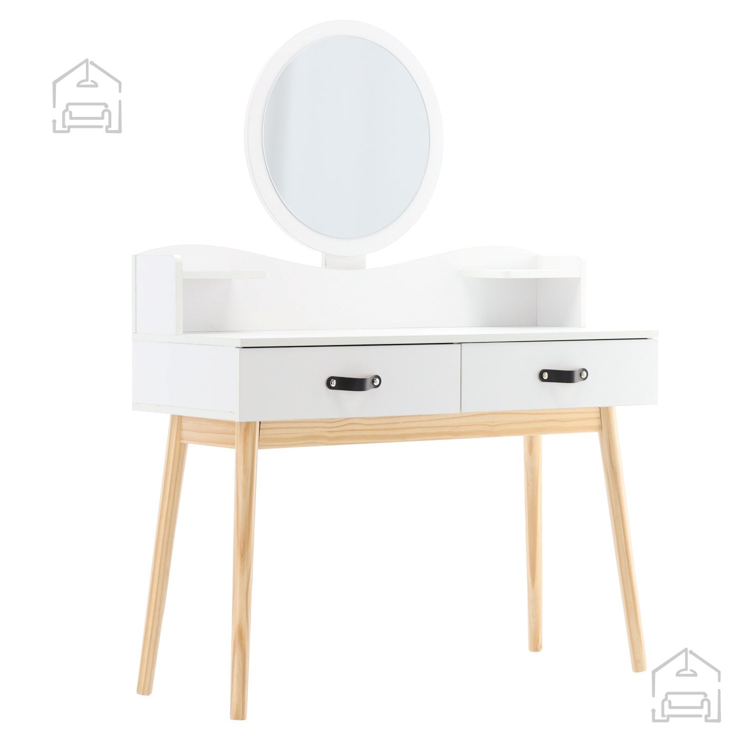 Model 9012 ponuja idealno razmerje med estetiko in praktičnostjo. Dva prostorna predala omogočata shranjevanje ličil, krtač, nakita ali drugih osebnih predmetov, ki jih želite imeti vedno pri roki. Dodatni dve polici pod mizno ploščo zagotavljata še več prostora za škatlice, parfume ali dekorativne elemente, s katerimi lahko toaletko personalizirate po svojem okusu. Vgrajeno okroglo ogledalo je ne le funkcionalen, temveč tudi estetski poudarek, ki prostoru doda klasično noto in vizualno razširi ambient.