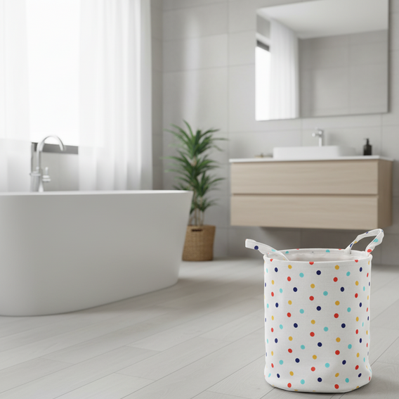 Ta praktičen in estetsko dovršen koš za perilo ali igrače znamke Chomik je zasnovan za vsak dom, kjer je red in organizacija enako pomembna kot privlačen videz. S svojo mehko, a stabilno strukturo in prikupnim vzorcem pikic se lepo poda tako v kopalnico kot v otroško sobo, spalnico ali celo hodnik. Zaradi srednje velikosti (35 × 37 cm) omogoča dovolj prostora za shranjevanje perila, mehkih igrač, odej ali drugih manjših predmetov, hkrati pa ne zasede preveč prostora. Njegova vsestranskost in lahkotnost omogočata enostavno prenašanje iz prostora v prostor, kar je idealno za sodobne domove, kjer se funkcionalnost in estetika dopolnjujeta.