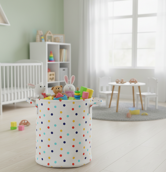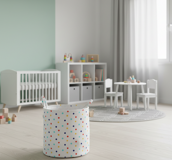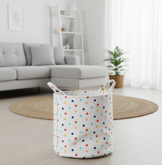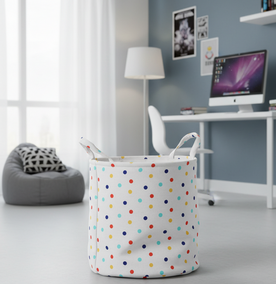 Večbarvni vzorec koša je njegova glavna estetska značilnost. Različni odtenki se lepo ujemajo z otroškimi sobami, kopalnicami ali pralnicami, kjer pogosto prevladujejo igrive in svetle barve. Barvna raznolikost izdelka pomeni, da se lahko prilagodi različnim notranjim slogom – od sodobnih do klasičnih. Koš ne deluje zgolj kot praktičen pripomoček, temveč tudi kot dekorativni element, ki popestri vsak prostor.