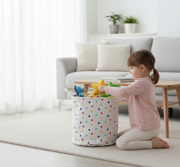 Koš za perilo/igrače Chomik MNIZ4939 je priporočljivo uporabljati v prostorih, kjer je potrebna hitra in pregledna organizacija. Če ga uporabljate za perilo, ga lahko postavite ob pralni stroj ali v kopalnico, kjer bo služil kot zbiralnik za oblačila. V otroški sobi pa se izkaže kot praktična rešitev za shranjevanje mehkih igrač, kock ali drugih pripomočkov za igro. Zaradi svoje lahke zasnove ga lahko otroci brez težav premikajo sami, kar spodbuja njihovo samostojnost pri pospravljanju.