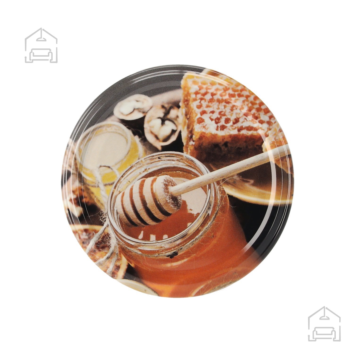 Velikost fi82 in privlačen motiv medene kroglice: Pokrov fi82 6z kozarec z kroglico medu m21 kart. – Chomik. Ta praktični pokrov izstopa s svojim značilnim dekorjem, ki prikazuje sijočo medeno kroglico, ter zanesljivo zapiralno funkcijo, zaradi katere je shranjevanje medu ali drugih shrankov varno, estetsko in dolgotrajno. Namenjen je vsakomur, ki želi svoje domače izdelke zapakirati s pridihom topline in domačnosti, obenem pa ohraniti njihovo kakovost in aromo.