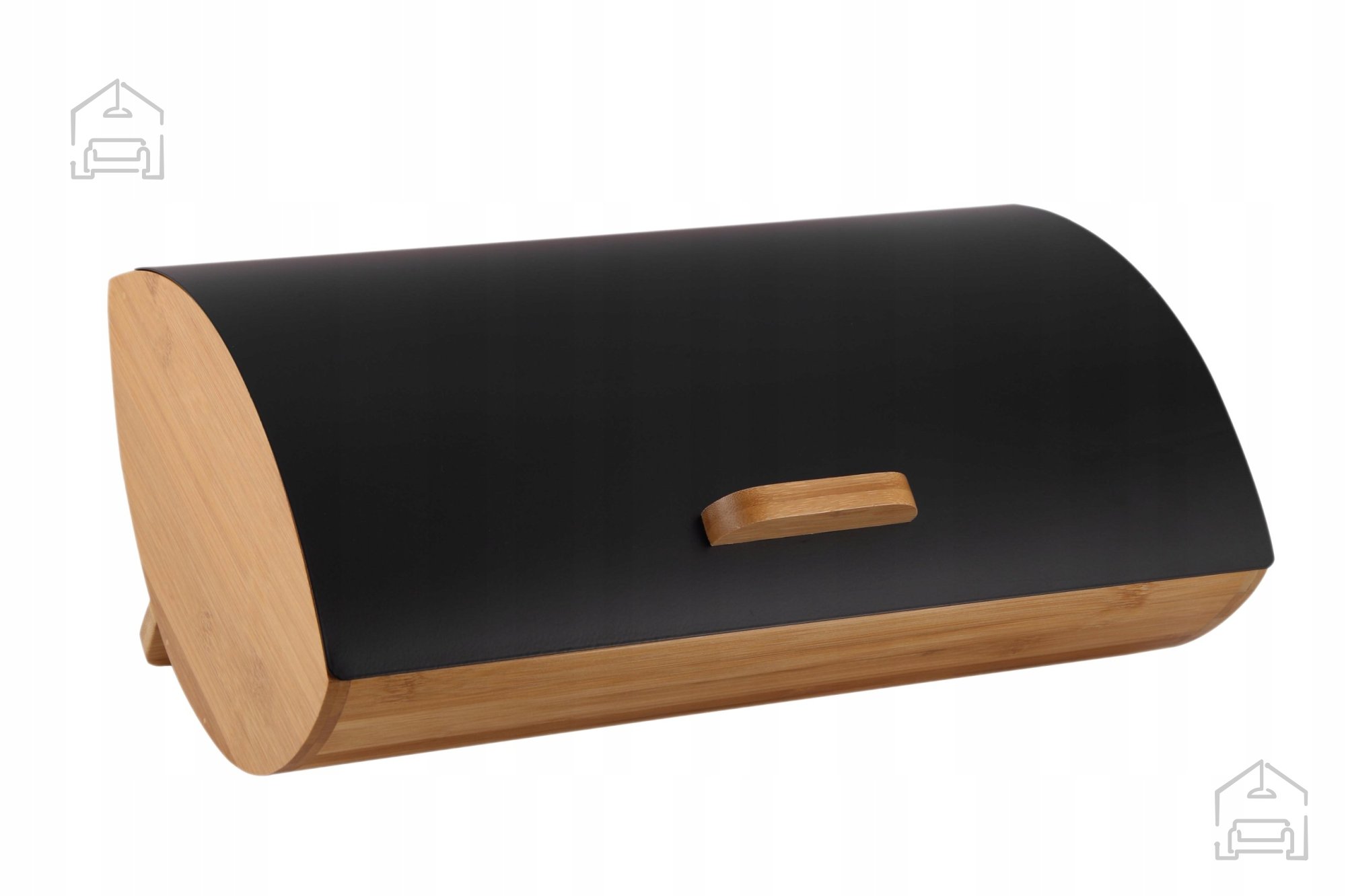 Bambus in kovinski pokrov v mat črni barvi: Škatla za kruh Ortica – Chomik.