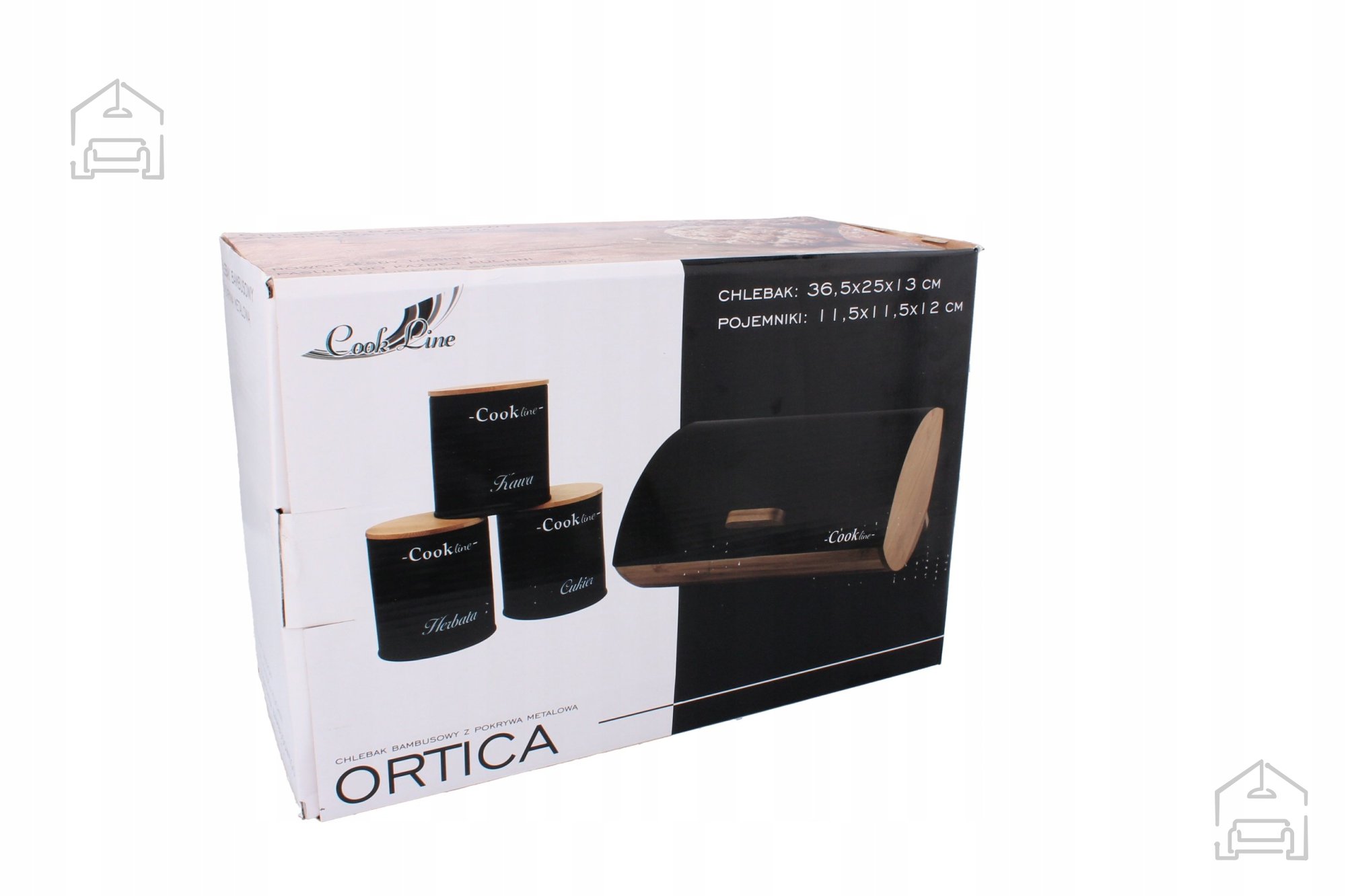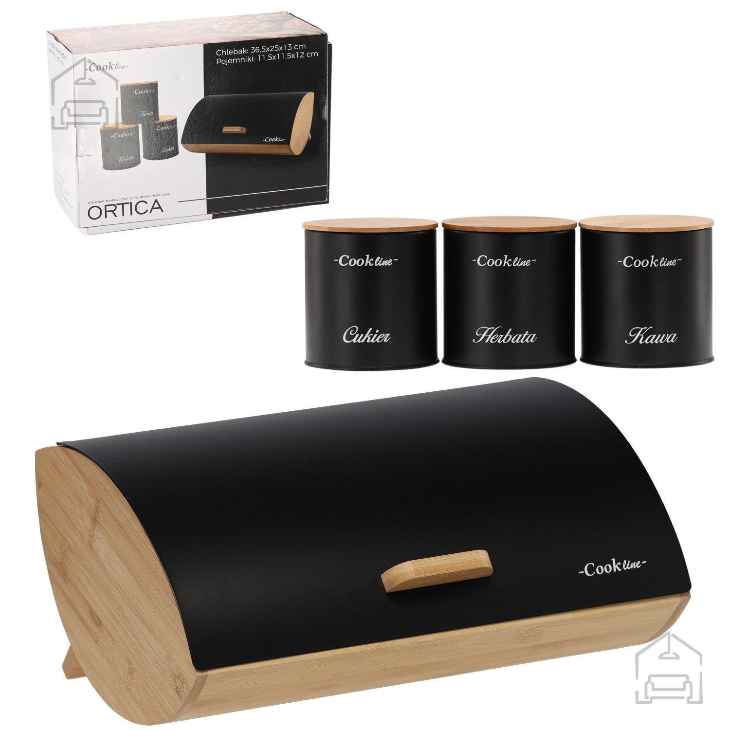 Posebnost kompleta Ortica so tri kvadratne posodice, vsaka z dimenzijami 11,5 × 11,5 × 12 cm. Izdelane so v enakem stilu in barvni kombinaciji kot škatla za kruh, zato skupaj tvorijo harmoničen komplet. Posodice so idealne za shranjevanje manjših živil ali dodatkov, ki jih želite imeti vedno pri roki. Lahko služijo tudi kot dekorativni elementi na kuhinjskem pultu, saj njihova mat črna barva in preprosta oblika ustvarjata občutek urejenosti in modernosti.