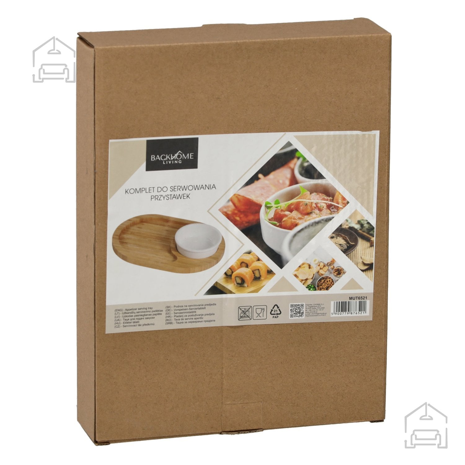 Ovalni pladenj z ločeno posodico 28 × 21 × 4 cm: Komplet za serviranje predjedi – Chomik.