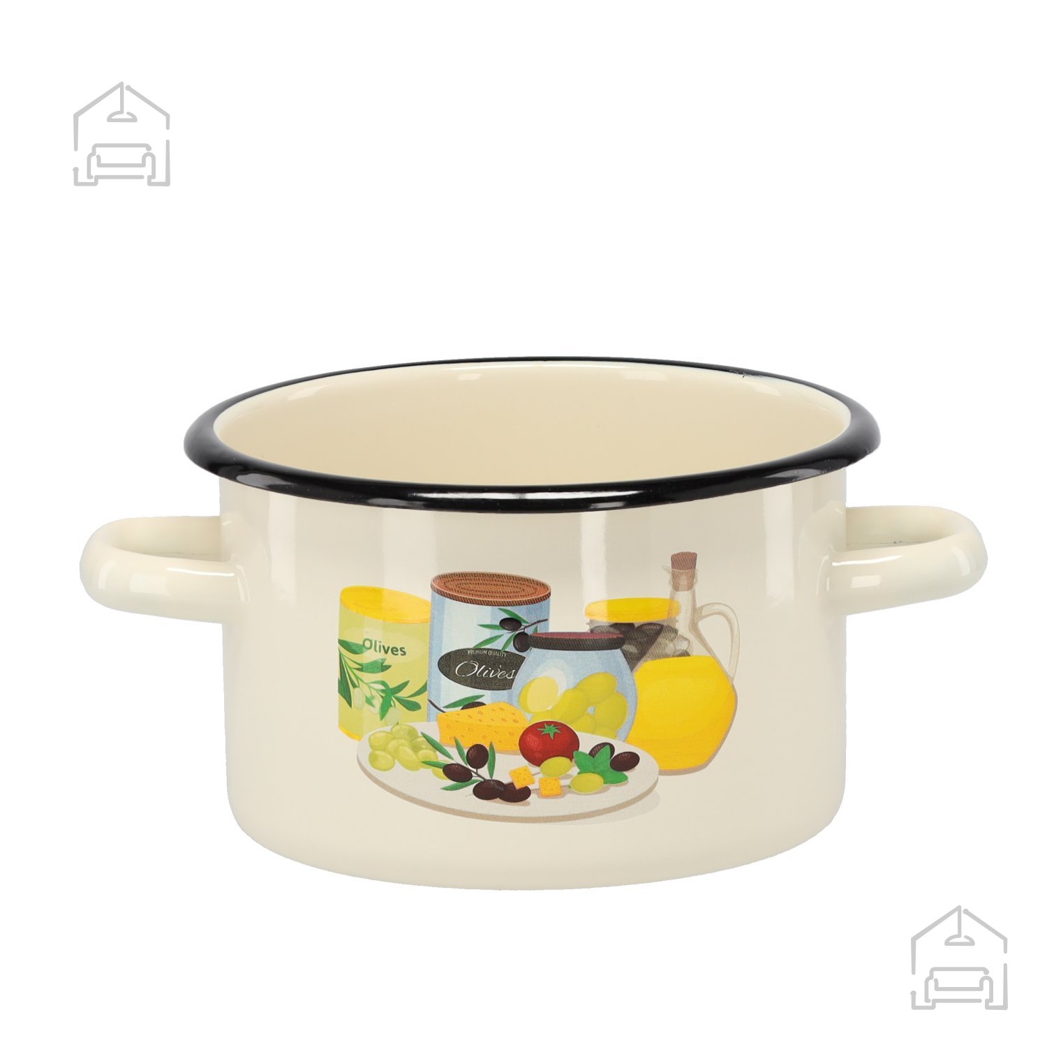 Emaliiran lonec 2 l 16 cm krem z vzorcem oljka