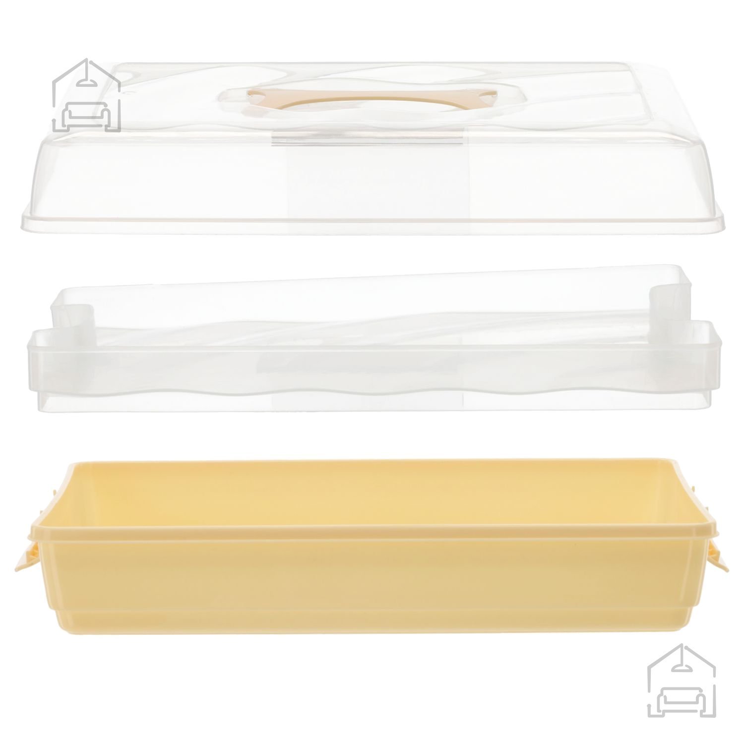 Ko torto postavite v posodo, pokrov preprosto namestite na dno in ga pritrdite s stranskimi zapirali. Po uporabi lahko posodo operete ročno ali v pomivalnem stroju in jo nato shranite – zaradi kompaktne oblike ne zasede veliko prostora v omari. Material se ne razbarva in ne absorbira vonjav, zato ostane posoda sveža in pripravljena za naslednjo uporabo.
