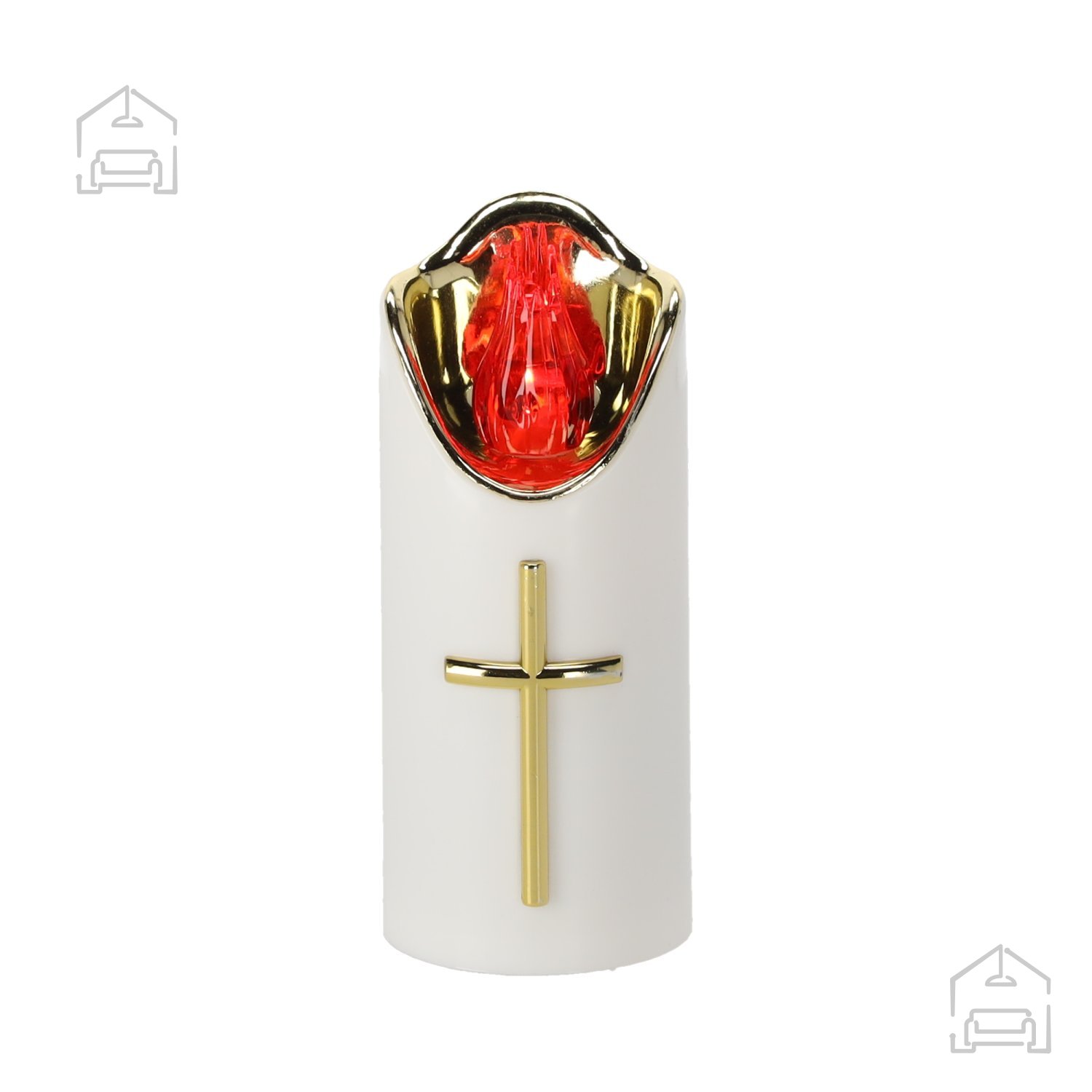 Svečа LED model Rico višine 12,5 cm, v belih in zlatih barvah, oddajajoča rdeč plamen. Napaja se z baterijami, ki zagotavljajo dolgotrajno in varno osvetlitev. Idealna za dekoracijo grobov in notranjih prostorov.