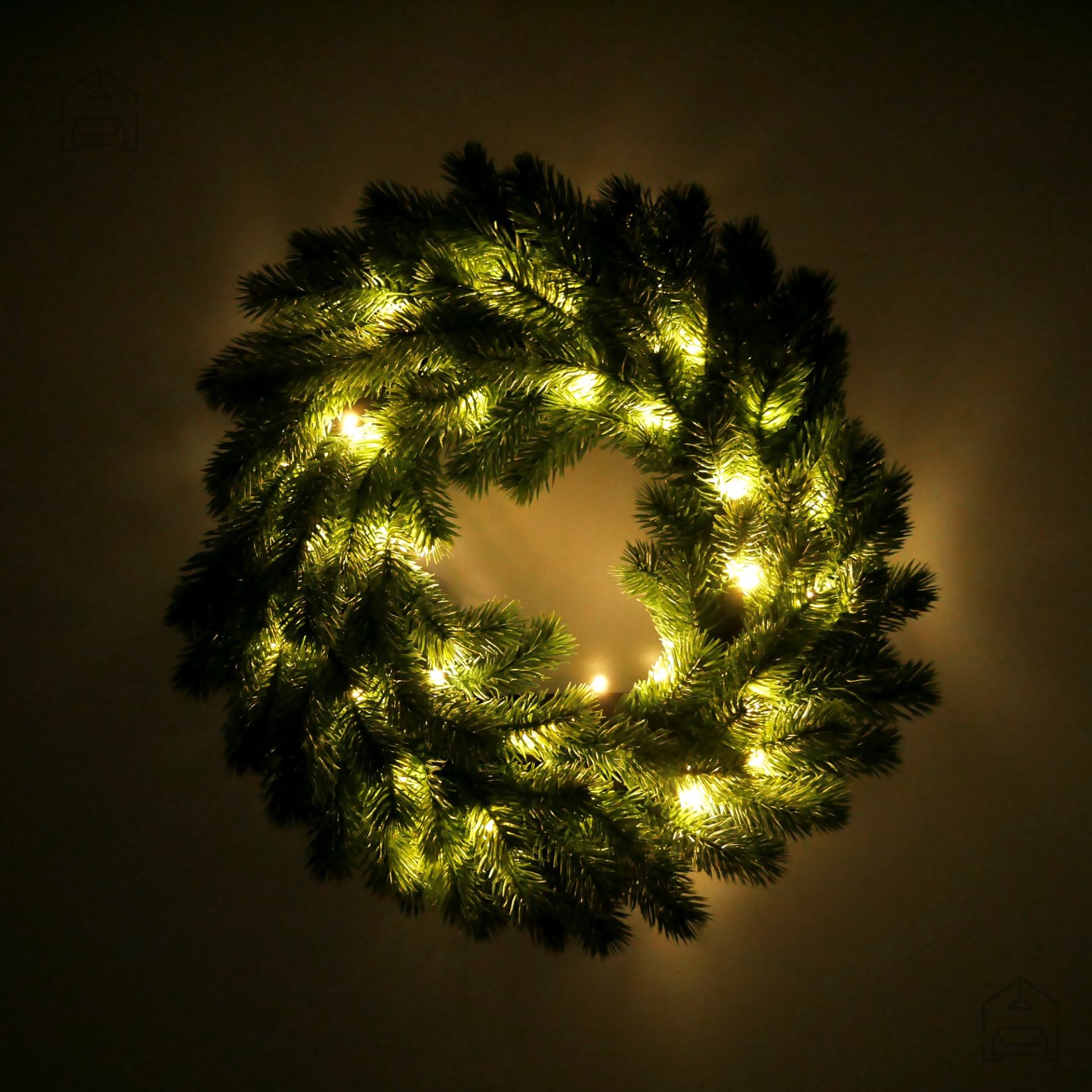 Premer 40 cm in 40 toplo belih LED lučk: Venec LED 40 cm 40 l zeleni na baterije – Chomik.