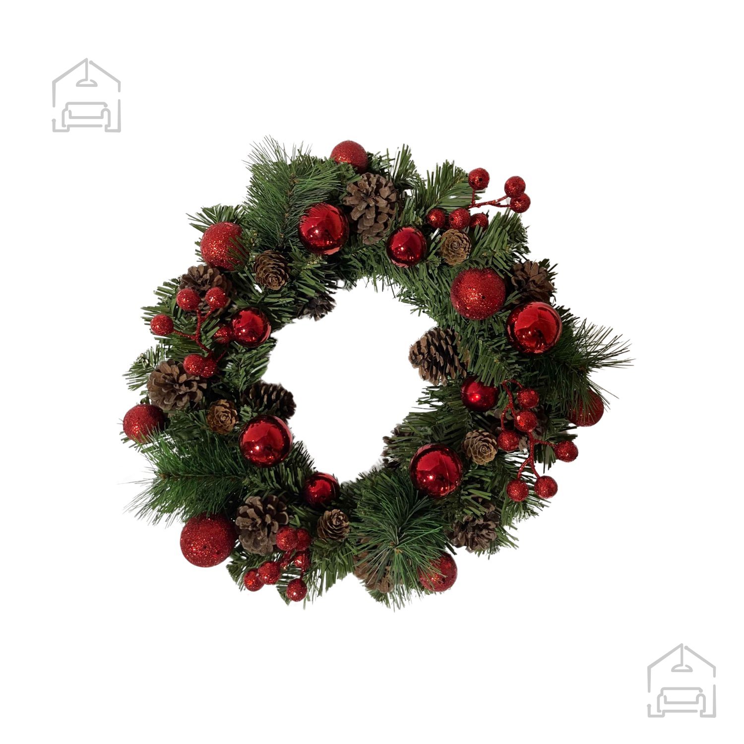 Premer 36 cm in naravni storži: Božični venec 36 cm z storži rdeč – Chomik. Ta praznični okras, ki prihaja iz Poljske, združuje toplino tradicionalnih materialov in živahno rdečo barvno paleto, ustvarjeno za popolno dopolnitev zimskega vzdušja v vašem domu ali na prostem. Venec Chomik je idealen za vse, ki želijo v svojem domu ustvariti občutek pristne božične pravljice, pri čemer naravni elementi in skrbno izbrani barvni toni vnesejo toplino, prijaznost in svečan videz v vsak ambient.