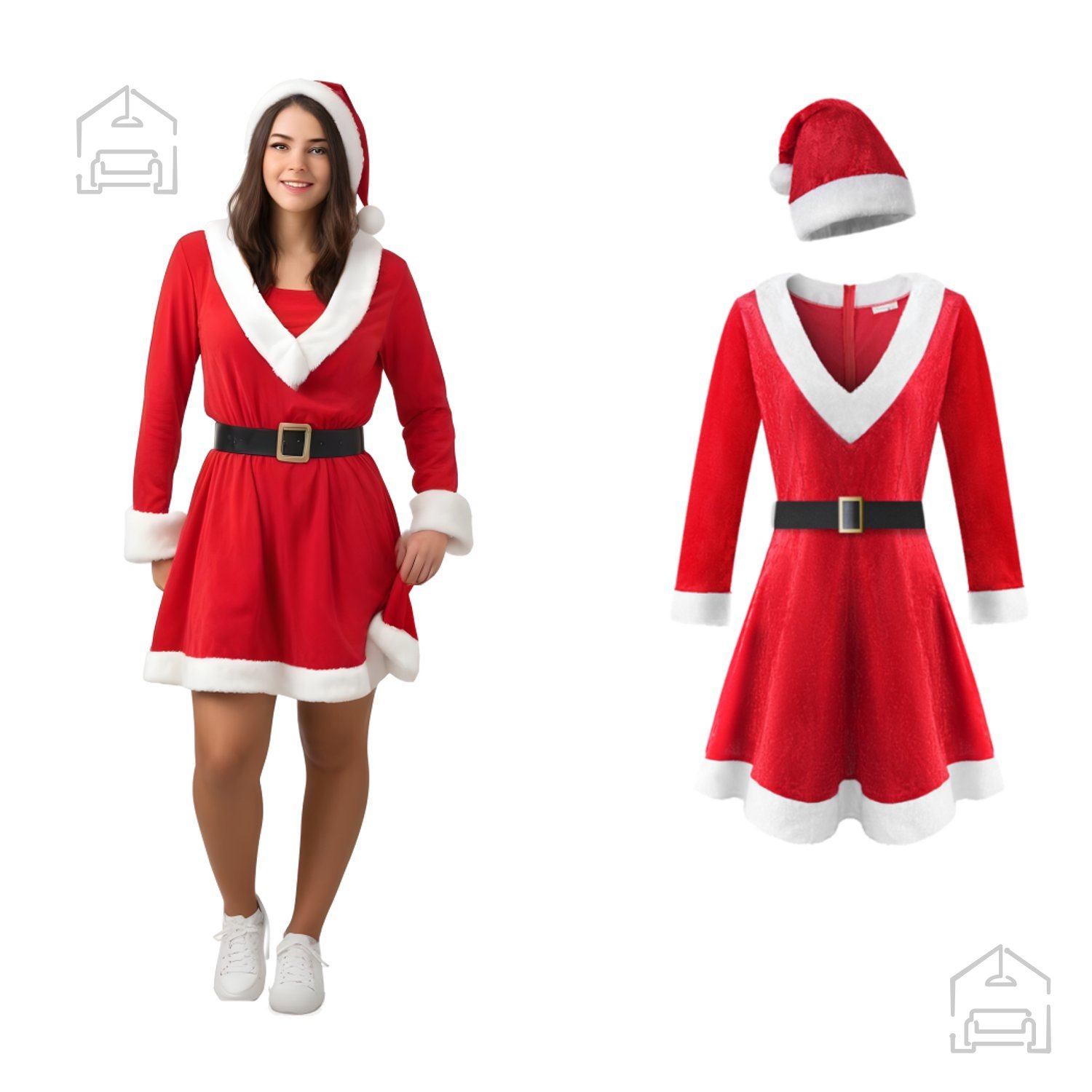 Kostum božiček ženski – Chomik vključuje vse, kar potrebujete za popolno preobrazbo v žensko različico Božička. V kompletu so: