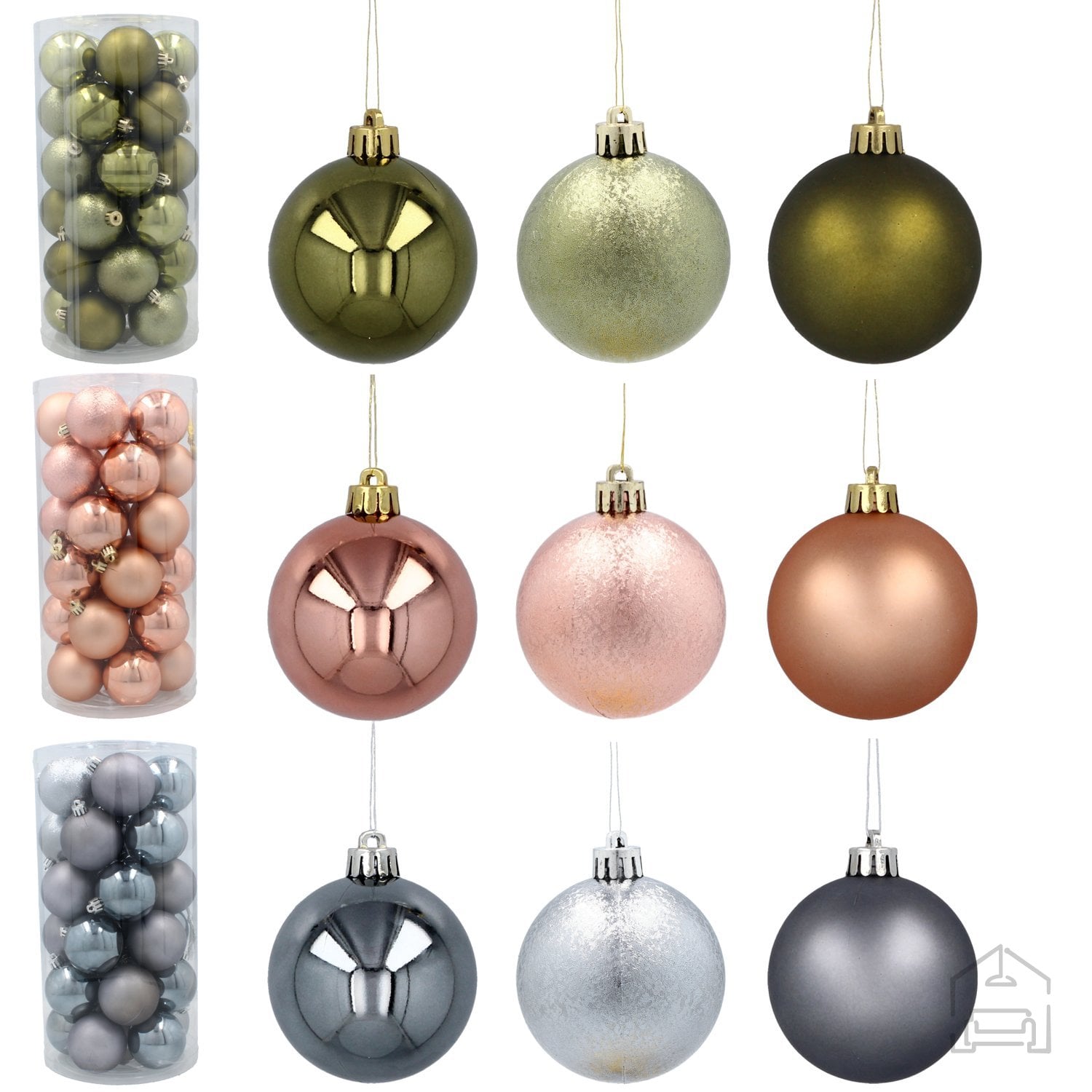 Premer 6 cm v elegantnih odtenkih olivne, bakrene in grafitne: Komplet 30 okraskov *7238 – Chomik.