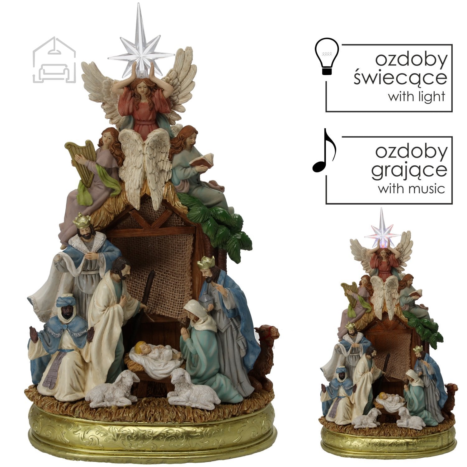 Smolnata konstrukcija in LED osvetlitev: Glasbena skrinjica božična LED jaslice 23 × 16,8 × 41 cm – Chomik.