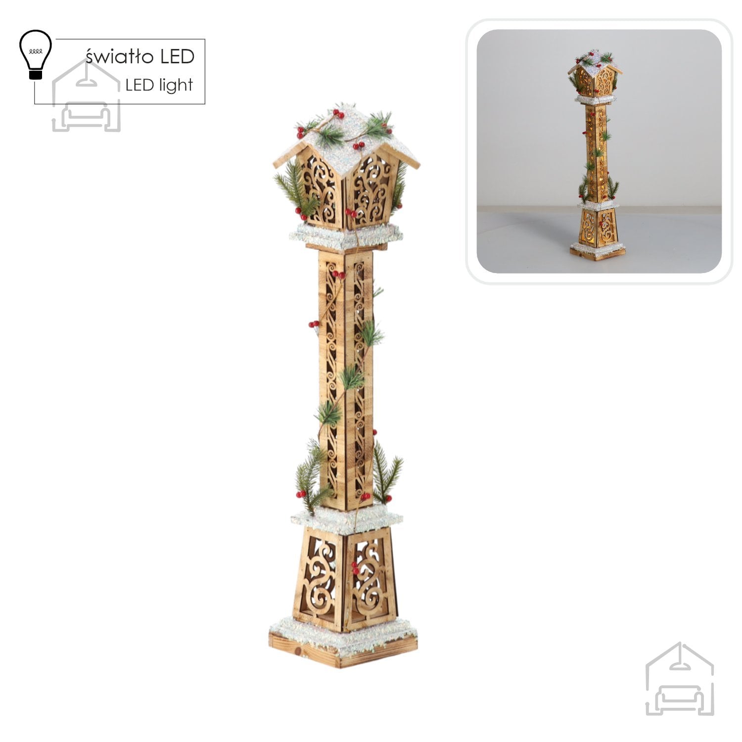 Lesena konstrukcija in topla LED osvetlitev: Praznična lesena rjava lanterna LED 16 × 16 × 85 cm – Chomik.