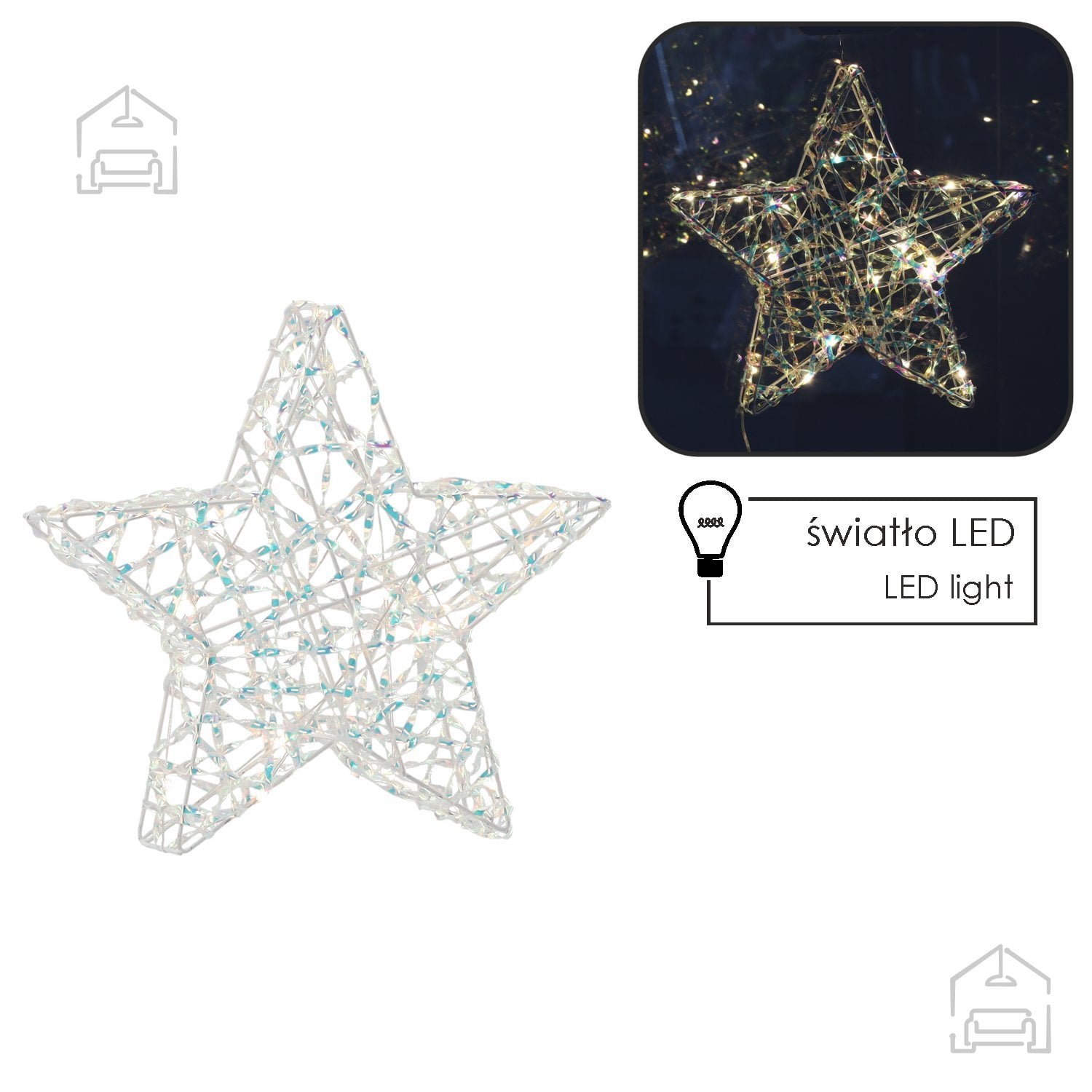 Posebnost izdelka je irizirajoči zaključek, ki razprši svetlobo v mavričnih tonih in tako ustvari razkošen, a prijeten vizualni učinek. LED tehnologija zagotavlja nizko porabo energije, dolgo življenjsko dobo in minimalno segrevanje, zato je dekoracija varna tudi za uporabo v notranjih prostorih. Chomik, priznani poljski proizvajalec dekorativnih dodatkov, je pozoren na kakovost svetlobnih komponent, zaradi česar zvezda ohranja enakomeren sijaj in ne utripa.