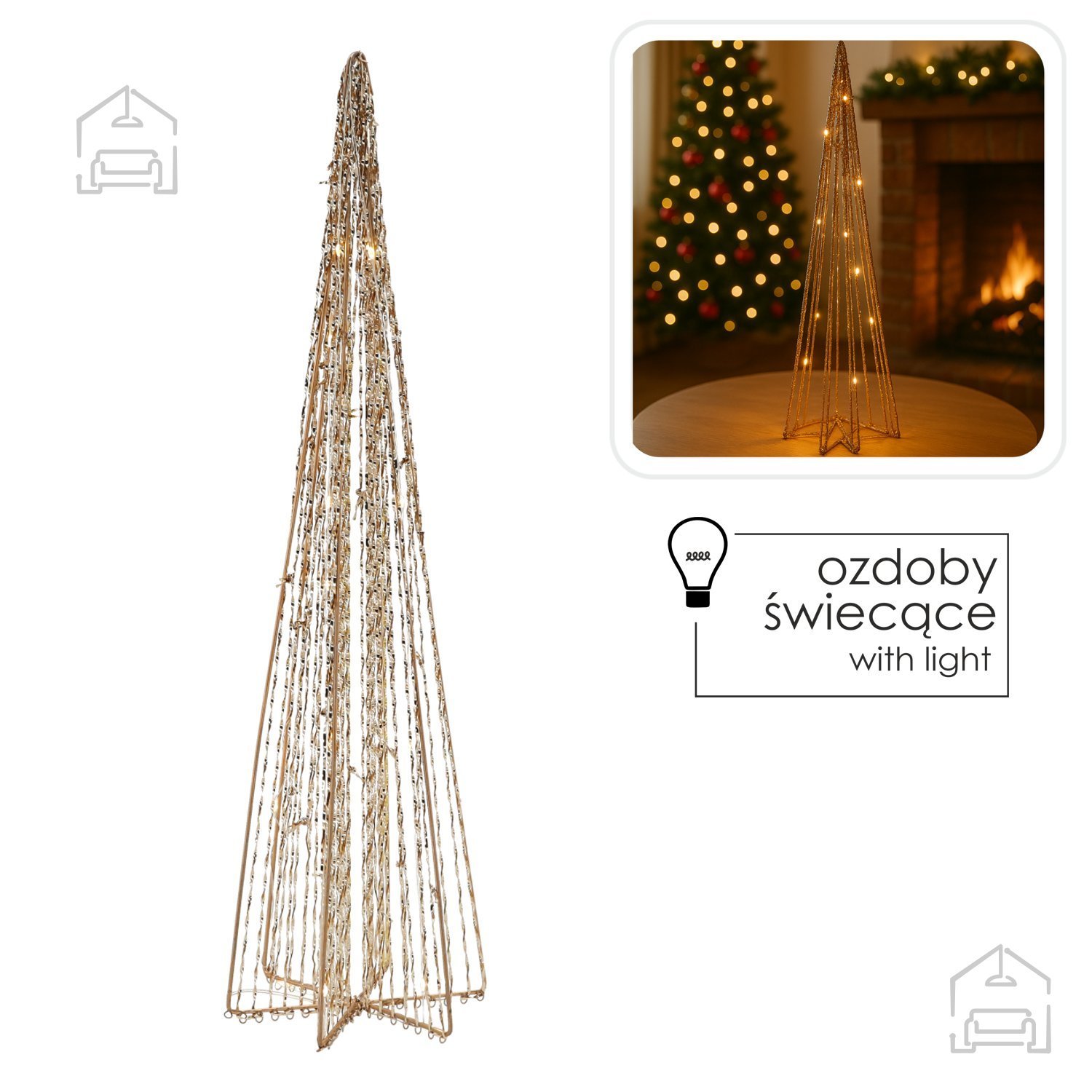 Zlata barva je simbol topline, obilja in prazničnega duha, zato se ta dekorativna smreka lepo ujema z drugimi okraski v toplih tonih – rdeči, bakreni, beli ali smetanasti. V kombinaciji z LED osvetlitvijo ustvari prijetno svetlobno igro, ki poudari teksturo vejic in nežno razprši svetlobo po prostoru. Zaradi stožčaste oblike jo lahko uporabite tudi kot samostojen dekorativni poudarek, brez dodatnih okraskov, saj je njena oblika že sama po sebi estetsko dovršena in elegantna.
