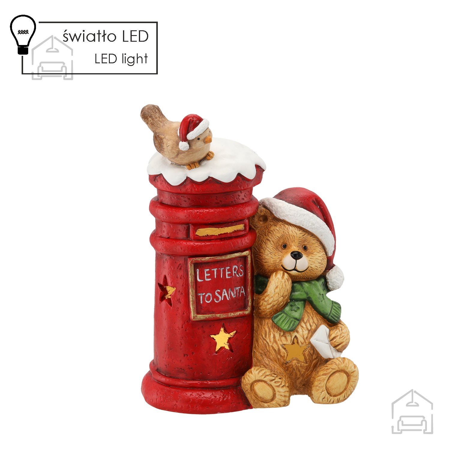 LED osvetlitev in magnezijev material: Božična figurica medved s poštnim nabiralnikom – Chomik.