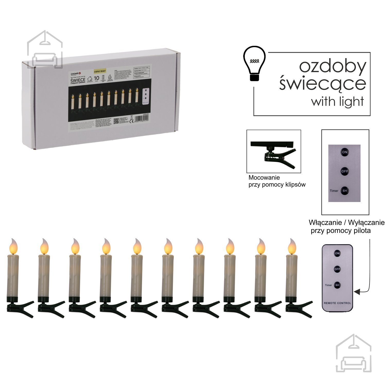LED tehnologija in kompaktne dimenzije 1,9 × 9 cm: Komplet 10 sveč s sponko in daljincem *9490 – Chomik.