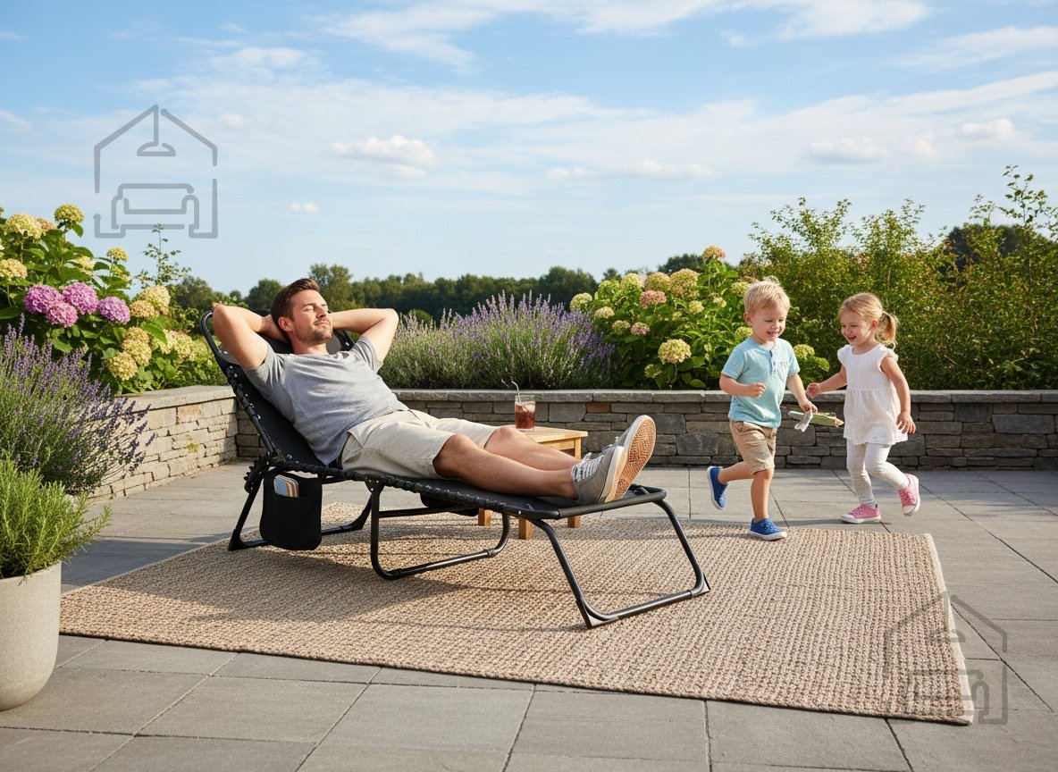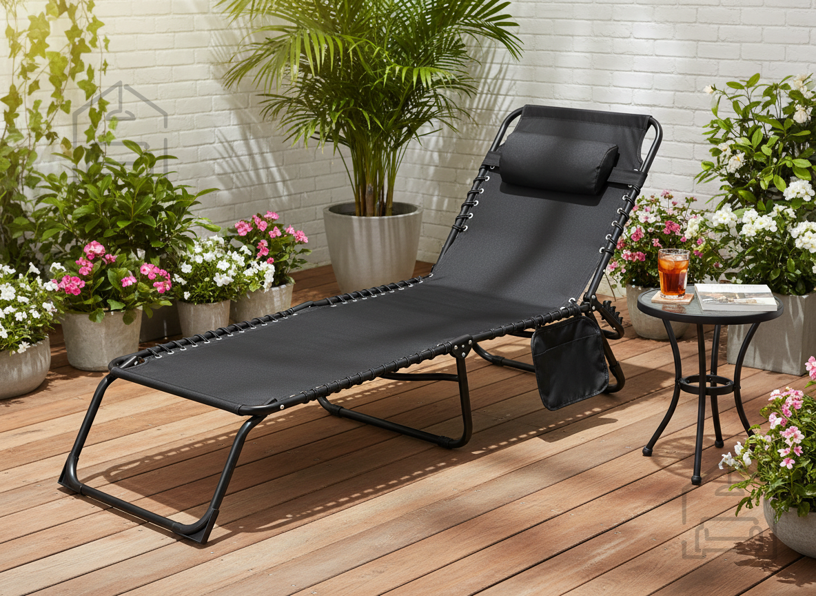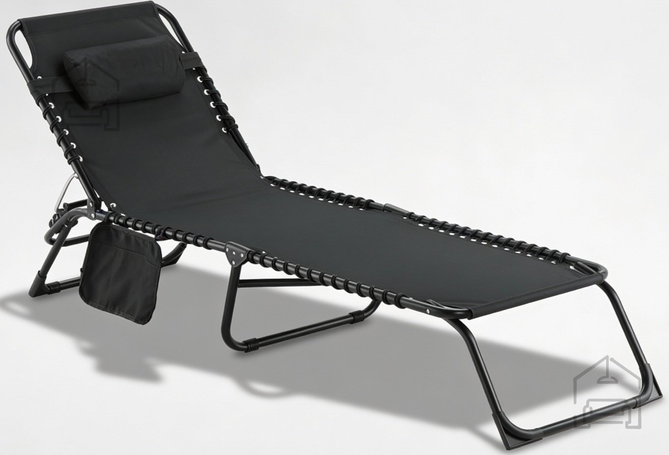 Vrtni ležalnik s žepom – LEZ2777 se odlično obnese v različnih zunanjih prostorih. Na vrtu ali terasi nudi udobno ležalno površino za počitek ali sončenje, na plaži pa postane priročen prostor za sproščanje ob morju. Zaradi svoje trpežnosti je primeren tudi za kampiranje ali piknike v naravi. Njegova elegantna črna barva dopolnjuje različne stile okolja – od sodobnih do klasičnih.
