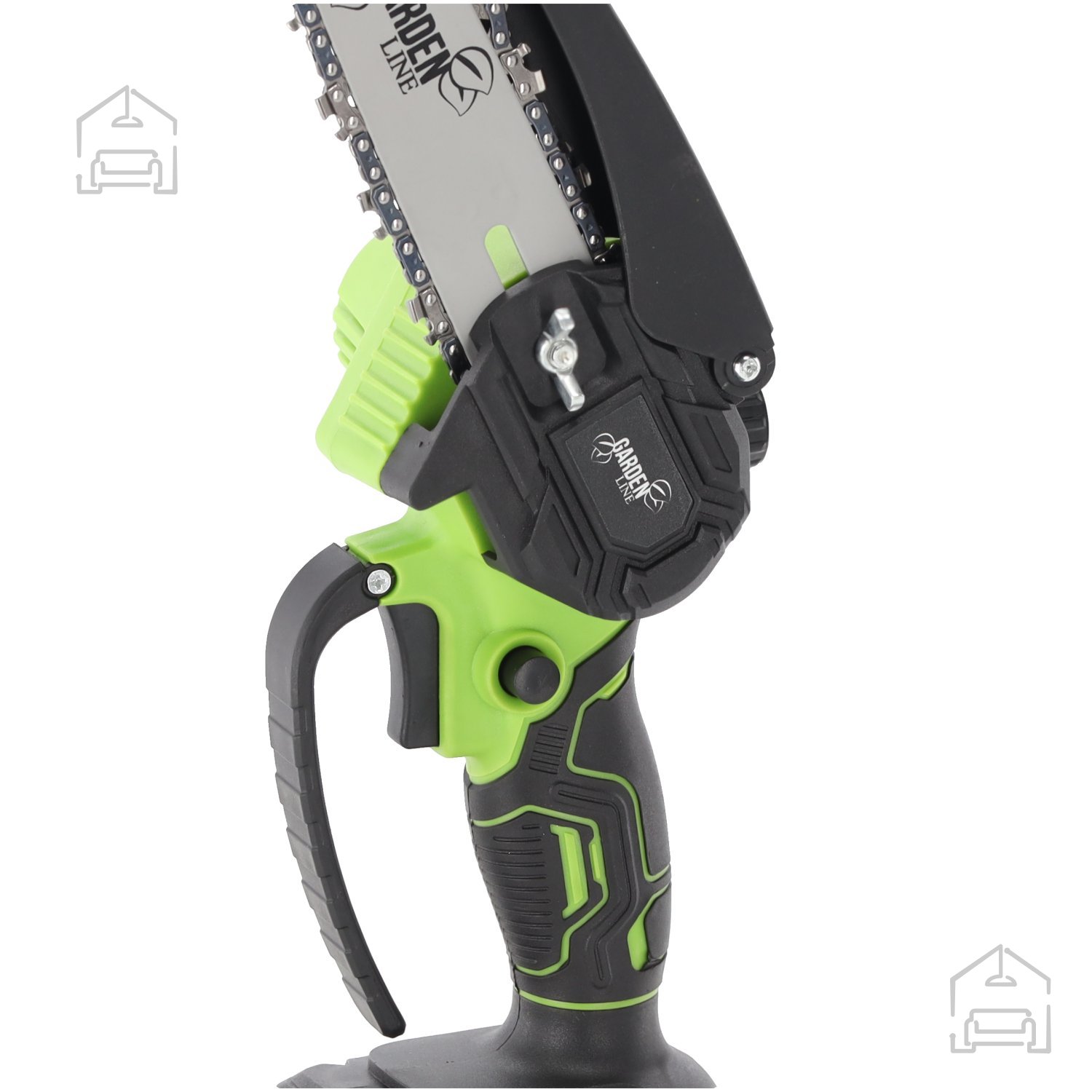 Akumulatorska žaga z dolžino meča 15 cm in močjo 600 W je idealna za hitro rezanje vej in manjših kosov lesa. Zahvaljujoč krtačnemu motorju doseže hitrost do 3800 obratov na minuto, kar zagotavlja gladek in učinkovit rez. Orodje je zasnovano za udobno uporabo – majhna teža in ergonomsko oblikovan ročaj omogočata dober oprijem in natančno vodenje žage tudi pri daljšem delu.